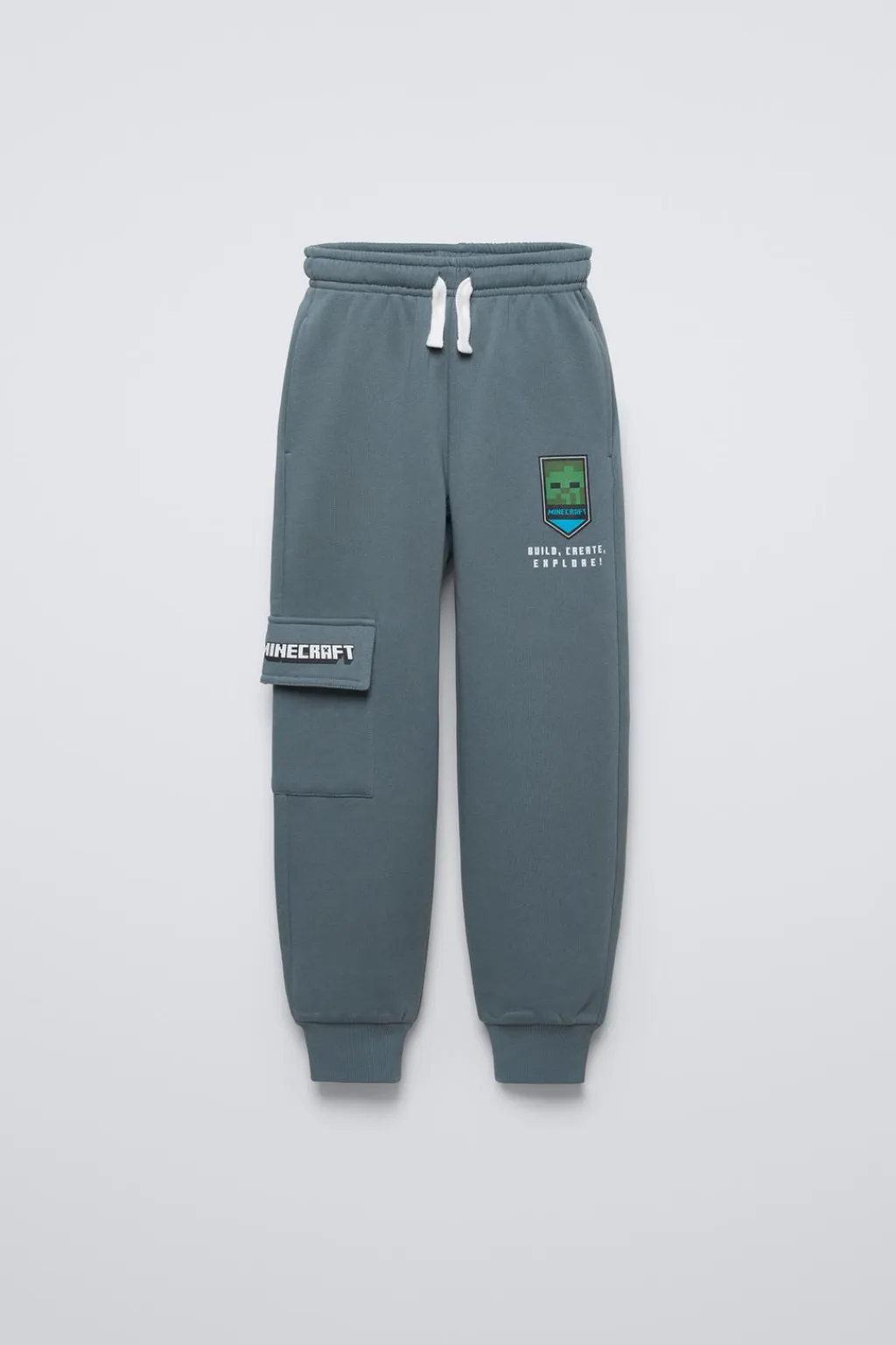 Pantalón tipo jogger con cinturilla elástica y cordones ajustables frontal. Bolsillos delanteros y de tipo plastrón con tapeta en lateral. Estampado MINECRAFT © MOJANG AB. ™. Bajo acabado en goma. Calidad interior cálida y suave.