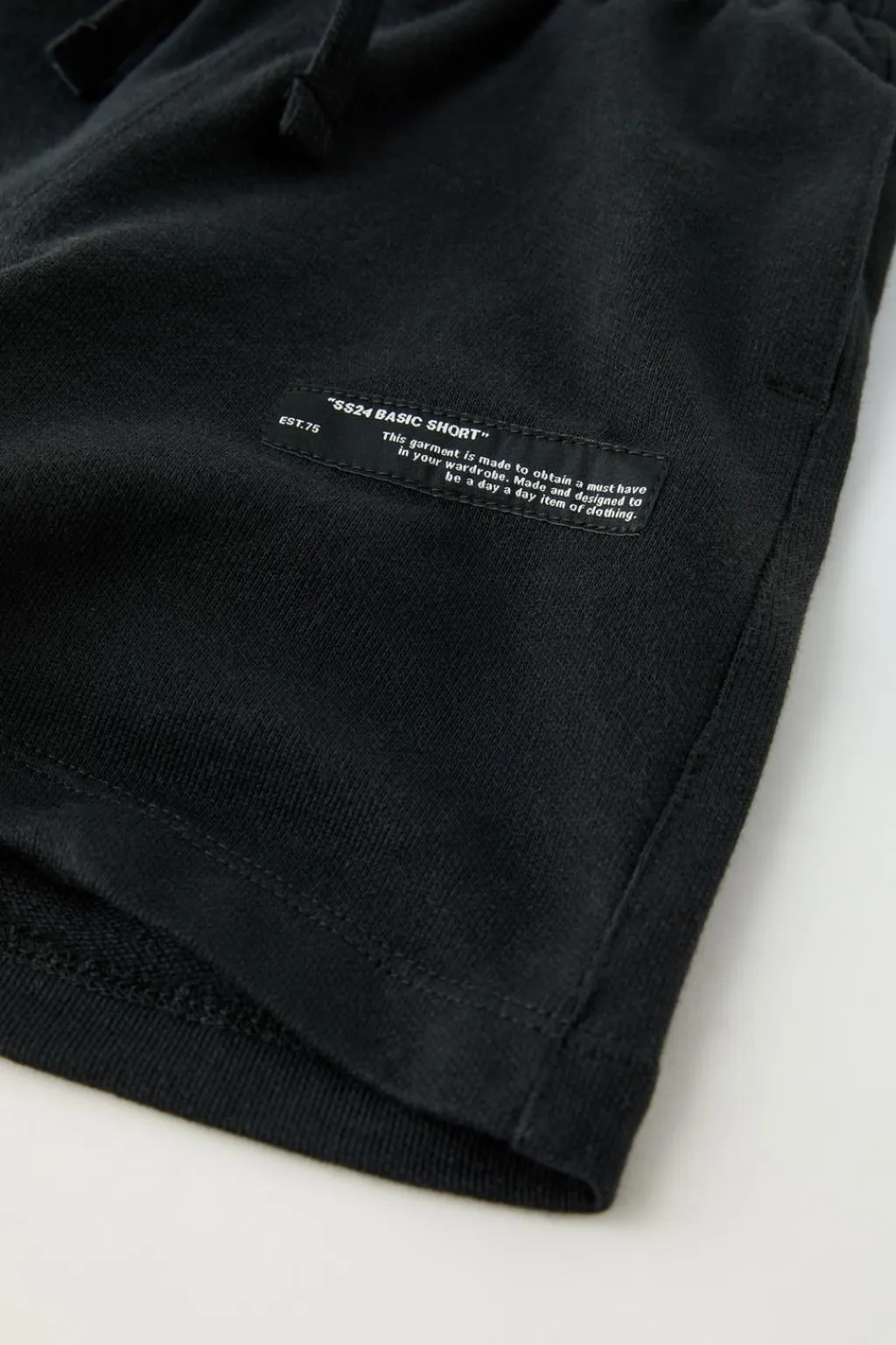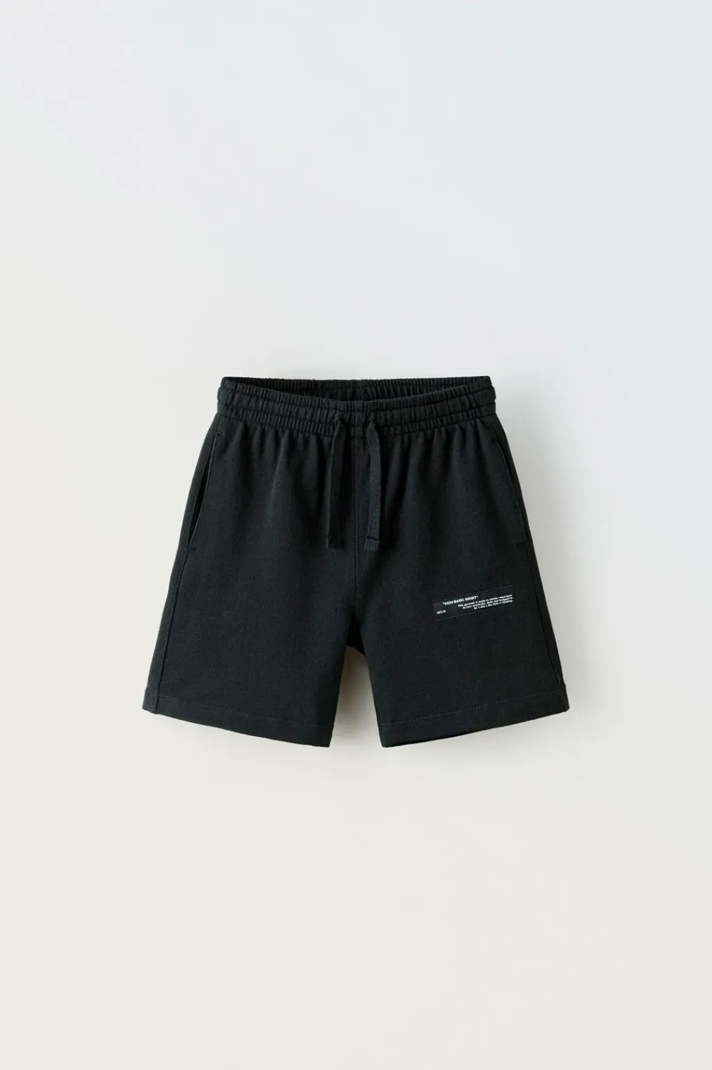 Bermuda con cinturilla elástica y cordones ajustables frontal. Bolsillos delanteros ocultos por costura y de tipo plastrón en espalda. Aplique etiqueta en delantero.