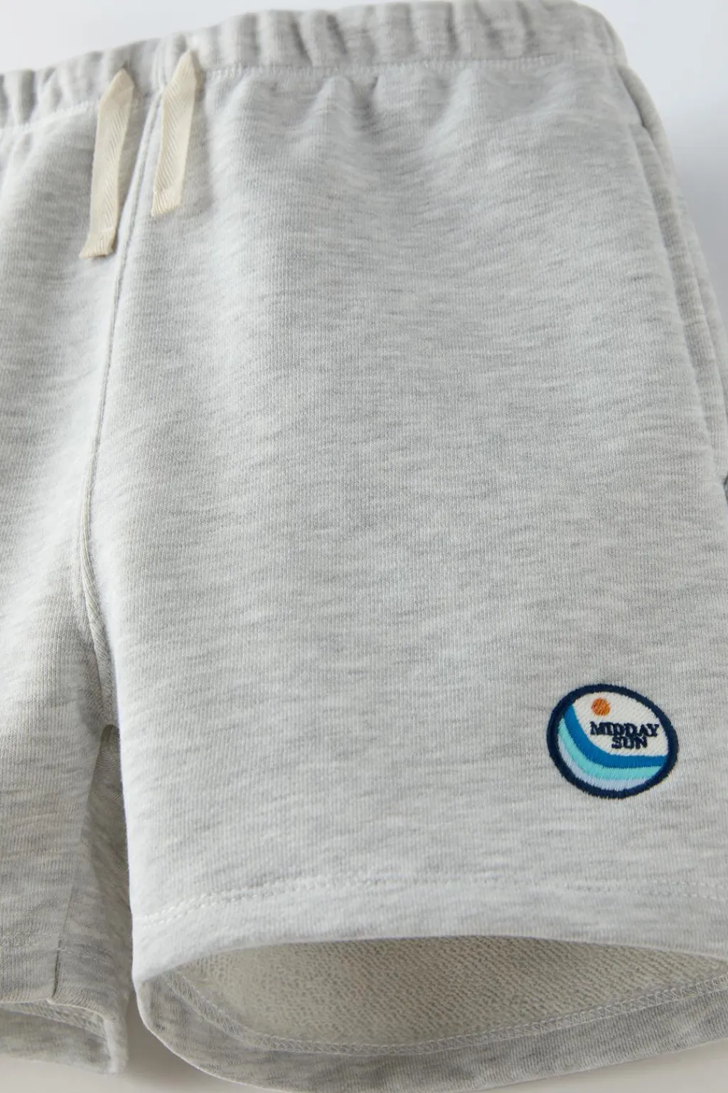 Bermuda con cinturilla elástica y cordones ajustables. Aplique etiqueta en bajo.