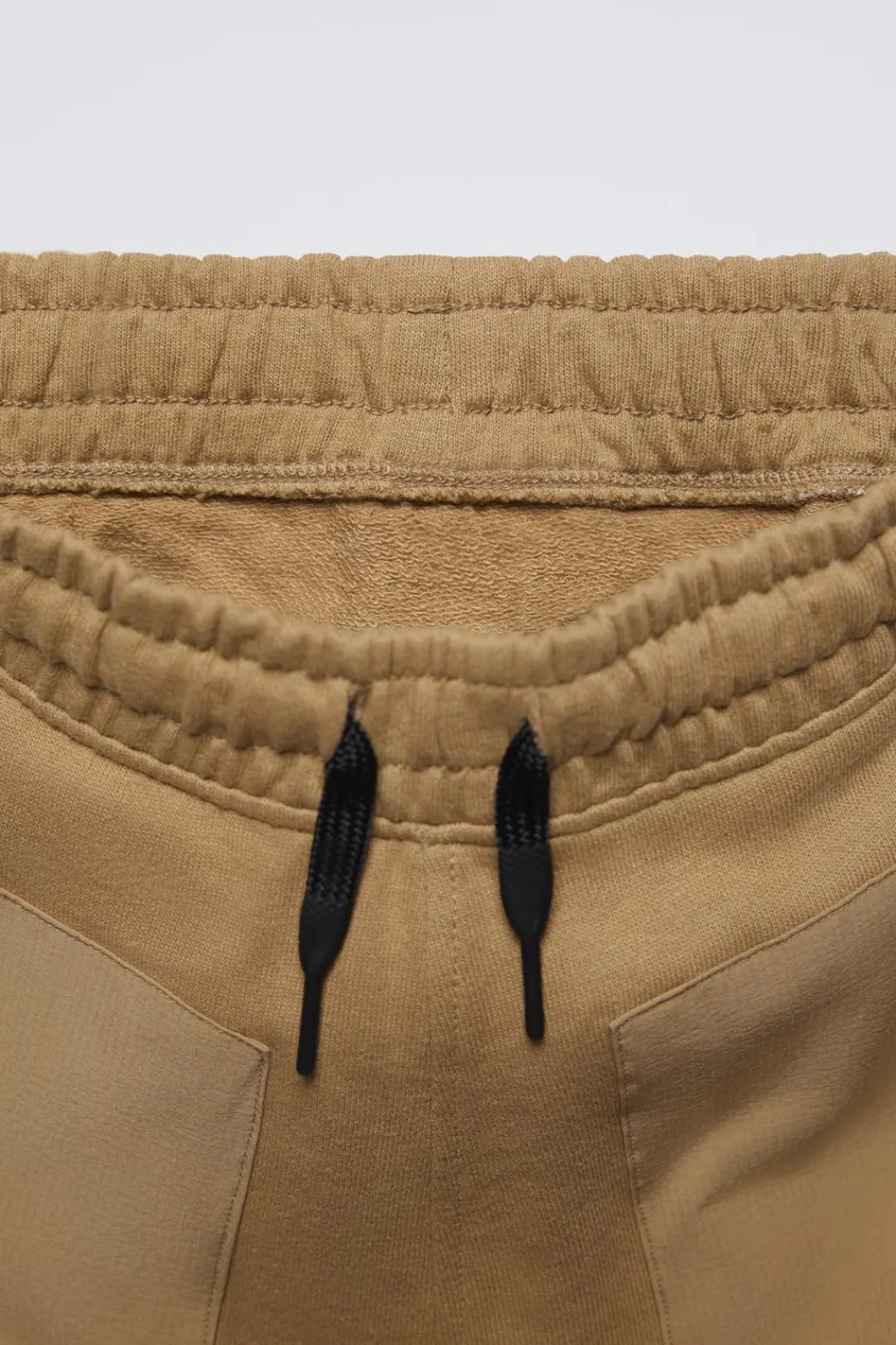 Pantalón con cinturilla elástica y cordones ajustables frontal. Bolsillos de tipo plastrón en delantero y con tapeta en pernera. Aplique etiqueta en espalda.