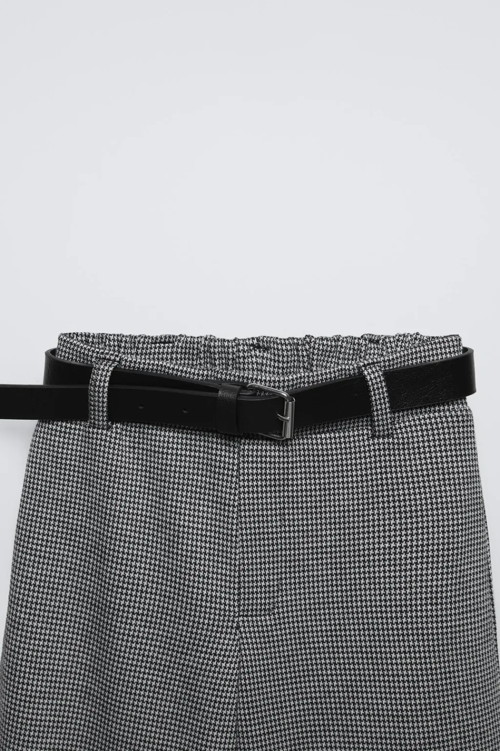Pantalón con cinturilla elástica y aplique cinturón ajustable frontal.