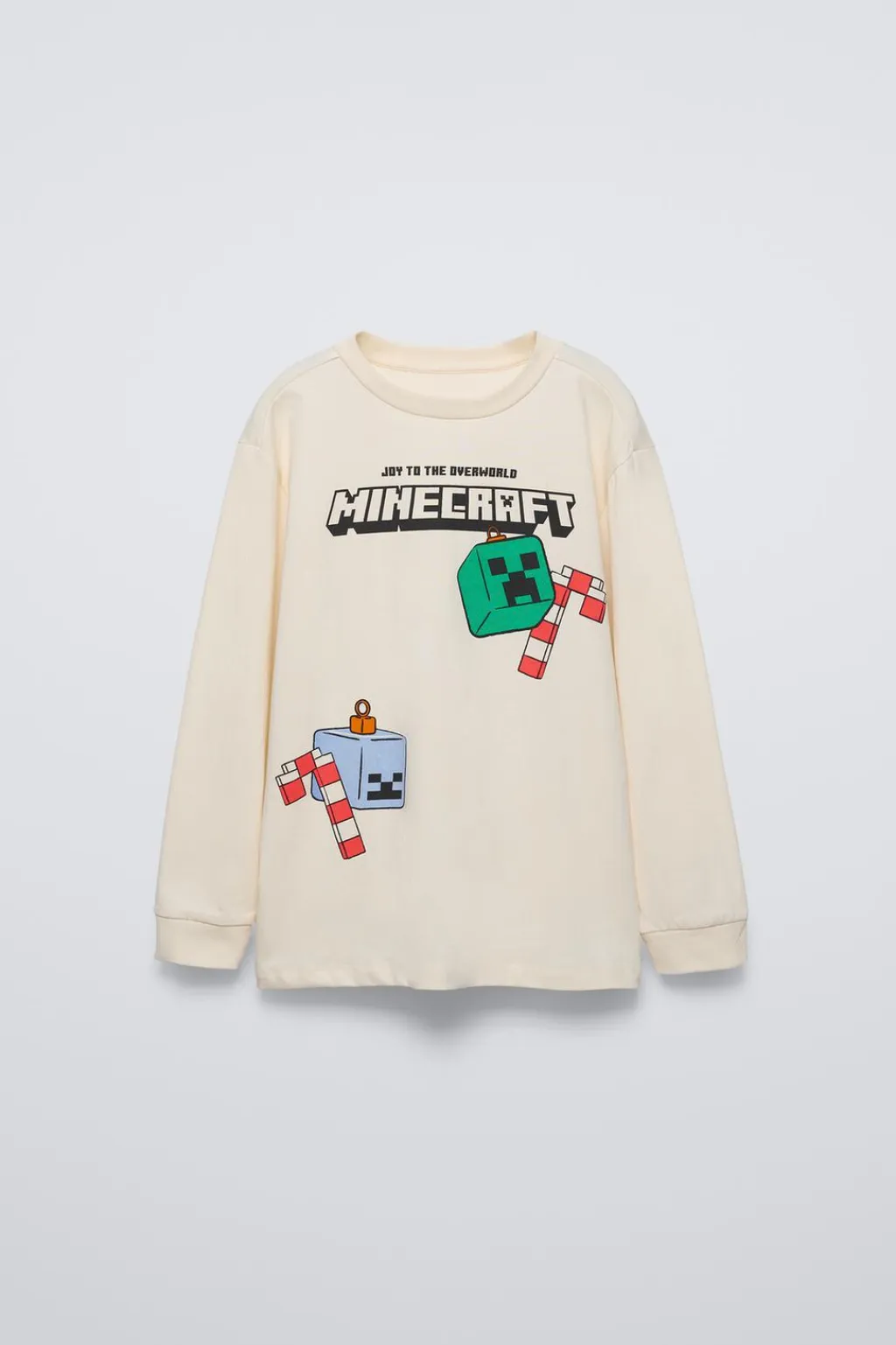 Pijama dos piezas. Camiseta con cuello redondo y manga larga. Pantalón con cinturilla elástica. Bajo acabado en puño. Estampado MINECRAFT © MOJANG AB. ™.