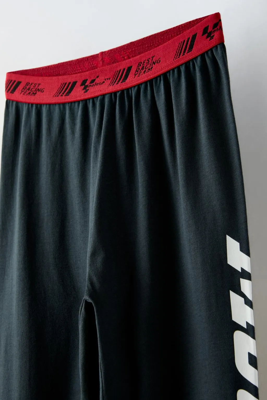 Pijama de dos piezas. Camisetas con cuello redondo y manga larga. Estampado en delantero y manga MOTO GP ™. Pantalón con cinturilla elástica estampado texto. Estampado en pernera. Bajo acabado en goma.
