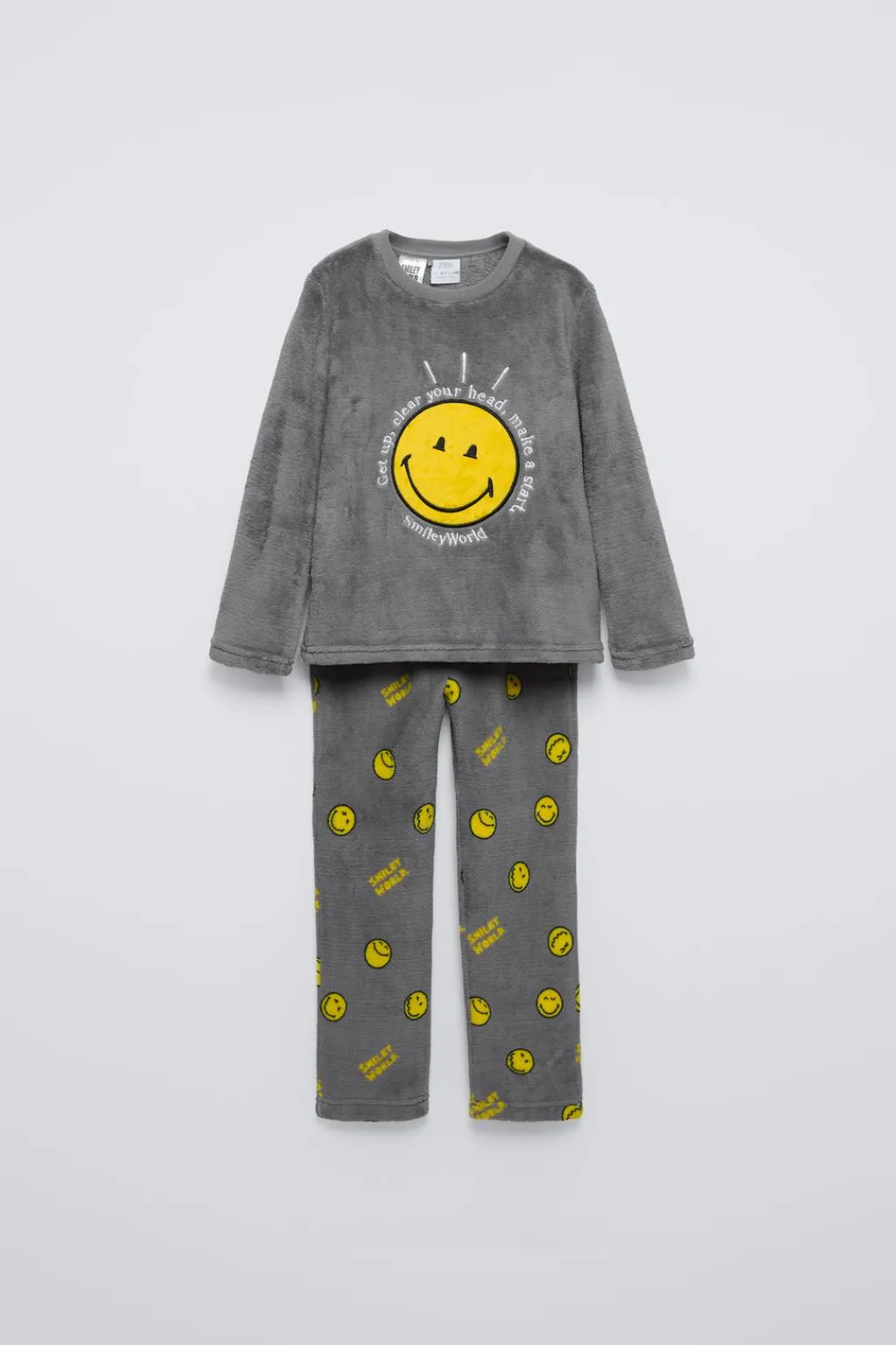 Pijama dos piezas. Camiseta con cuello redondo y manga larga. Pantalón con cinturilla elástica. Estampado SMILEYWORLD ®. Tejido cálido y suave en polar.