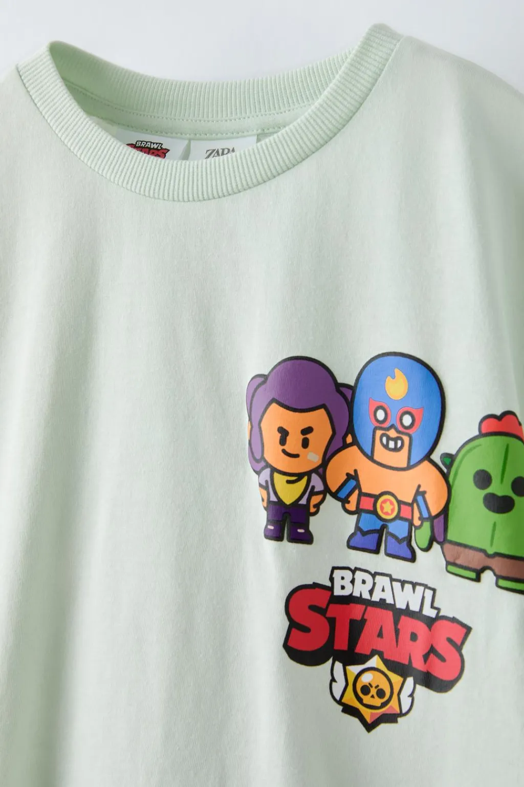 Conjunto dos piezas. Camiseta con cuello redondo y manga corta. Bermuda con cinturilla elástica. Estampado BRAWL STARS © SUPERCELL OY.