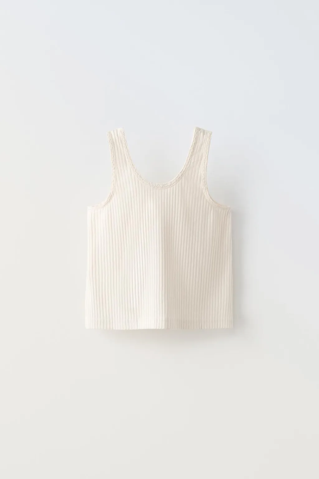 Pijama de dos piezas. Camiseta rib con cuello redondo y tirantes con detalle puntilla. Bermuda con cinturilla elástica. Detalle botones en delantero.