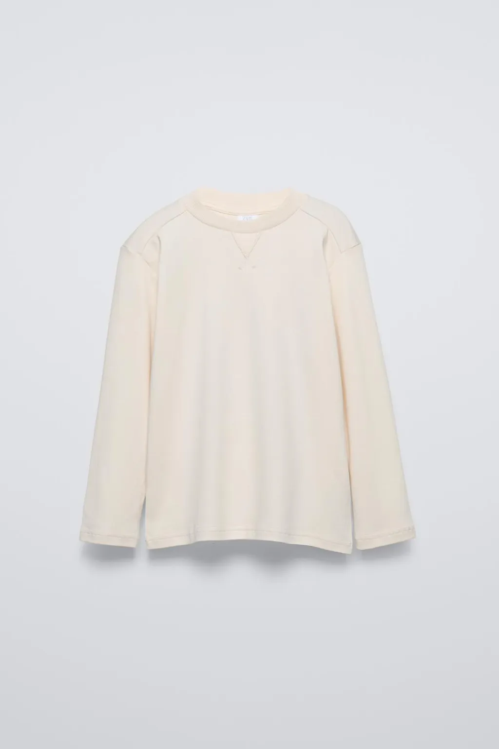 Pijama dos piezas. Camiseta con cuello redondo y manga larga. Pantalón con cinturilla elástica y aplique etiqueta frontal.