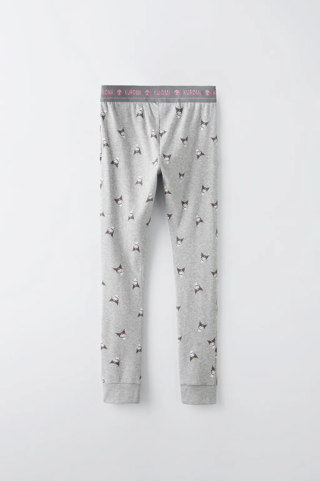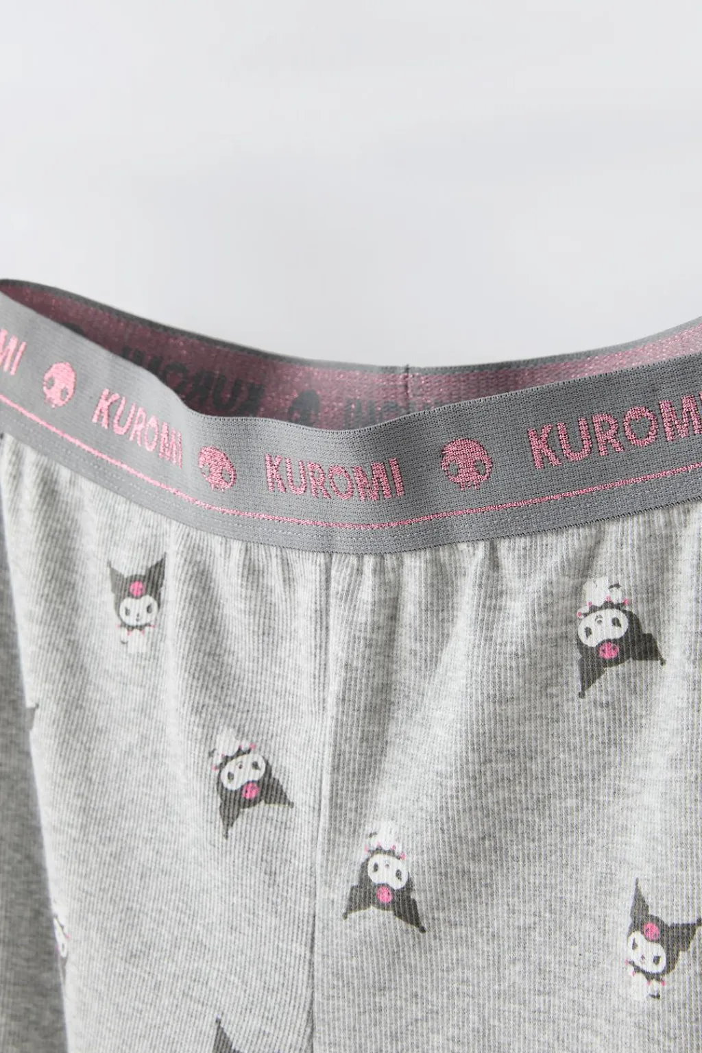Pijama dos piezas. Camiseta con cuello redondo y manga larga. Pantalón con cinturilla elástica y detalle brillo. Estampado KUROMI © SANRIO.