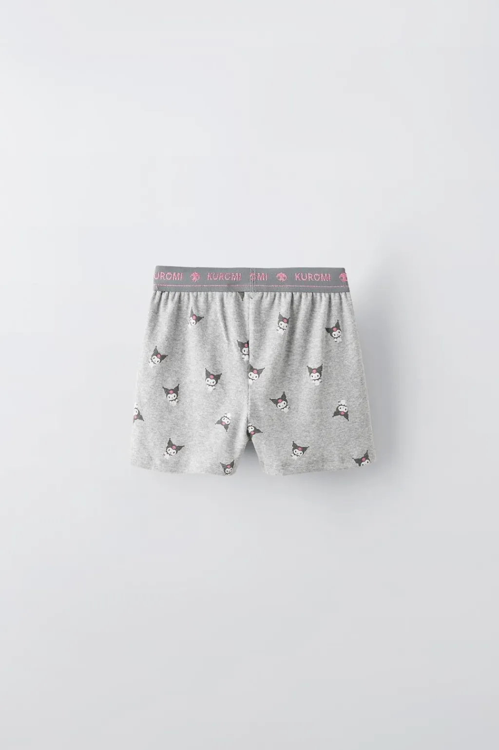 Pijama dos piezas. Camiseta con cuello redondo y manga corta. Bermuda con cinturilla elástica y detalle brillo. Estampado KUROMI © SANRIO.