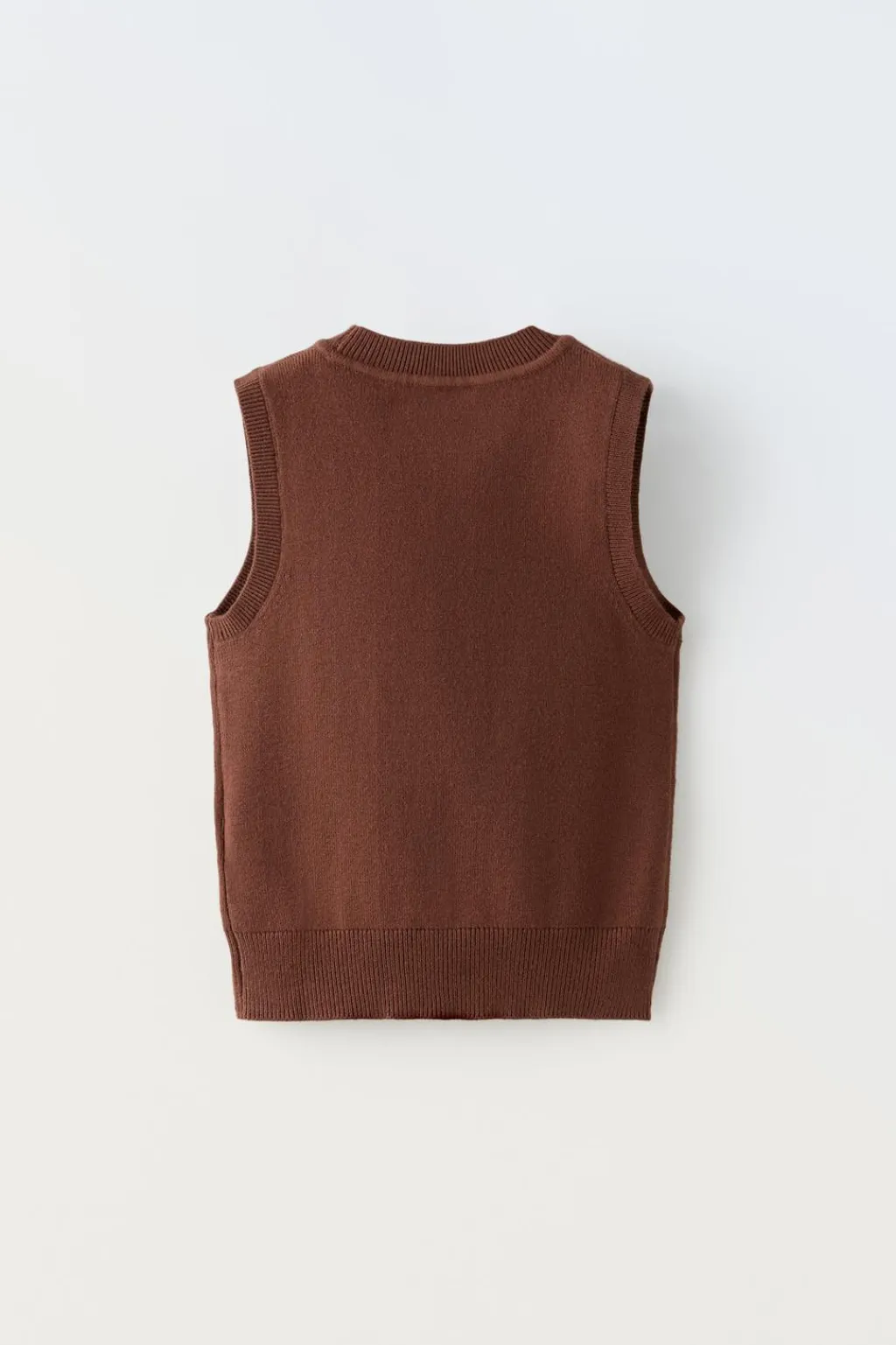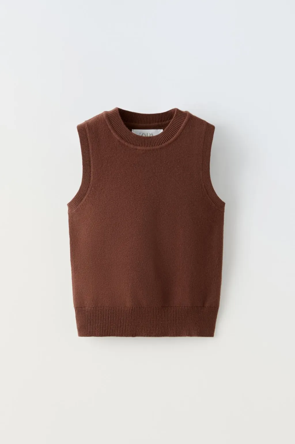 Top de punto con cuello redondo y manga sisa. Bajo acabado en rib.