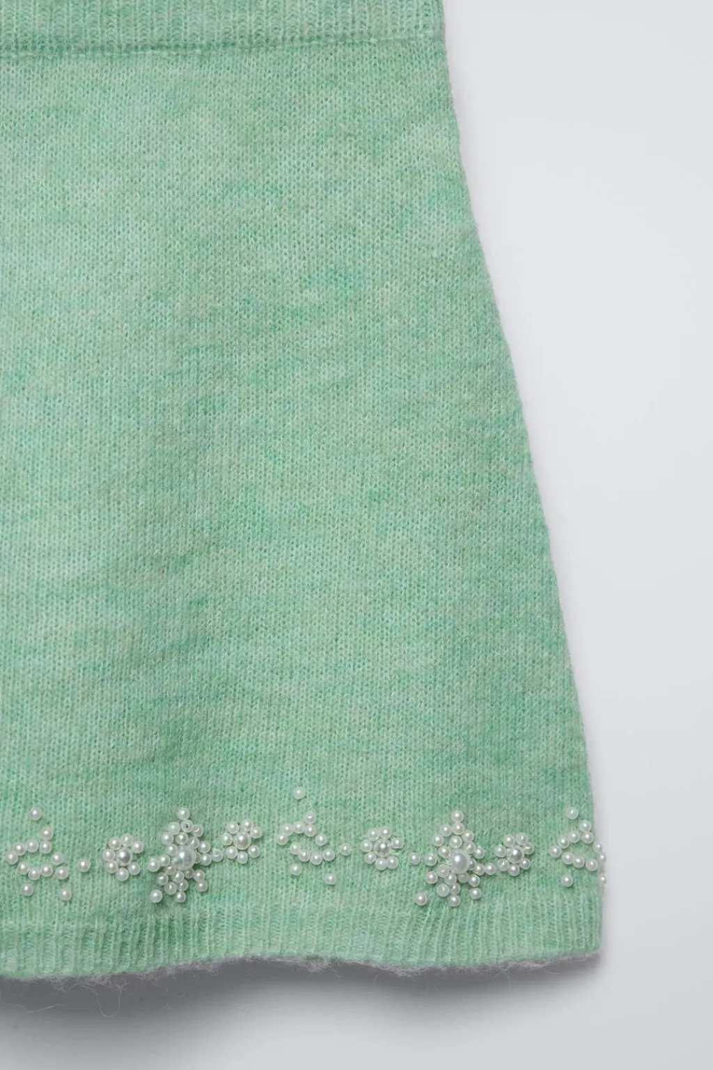 Falda de punto con cinturilla elástica y aplique perlas en bajo.