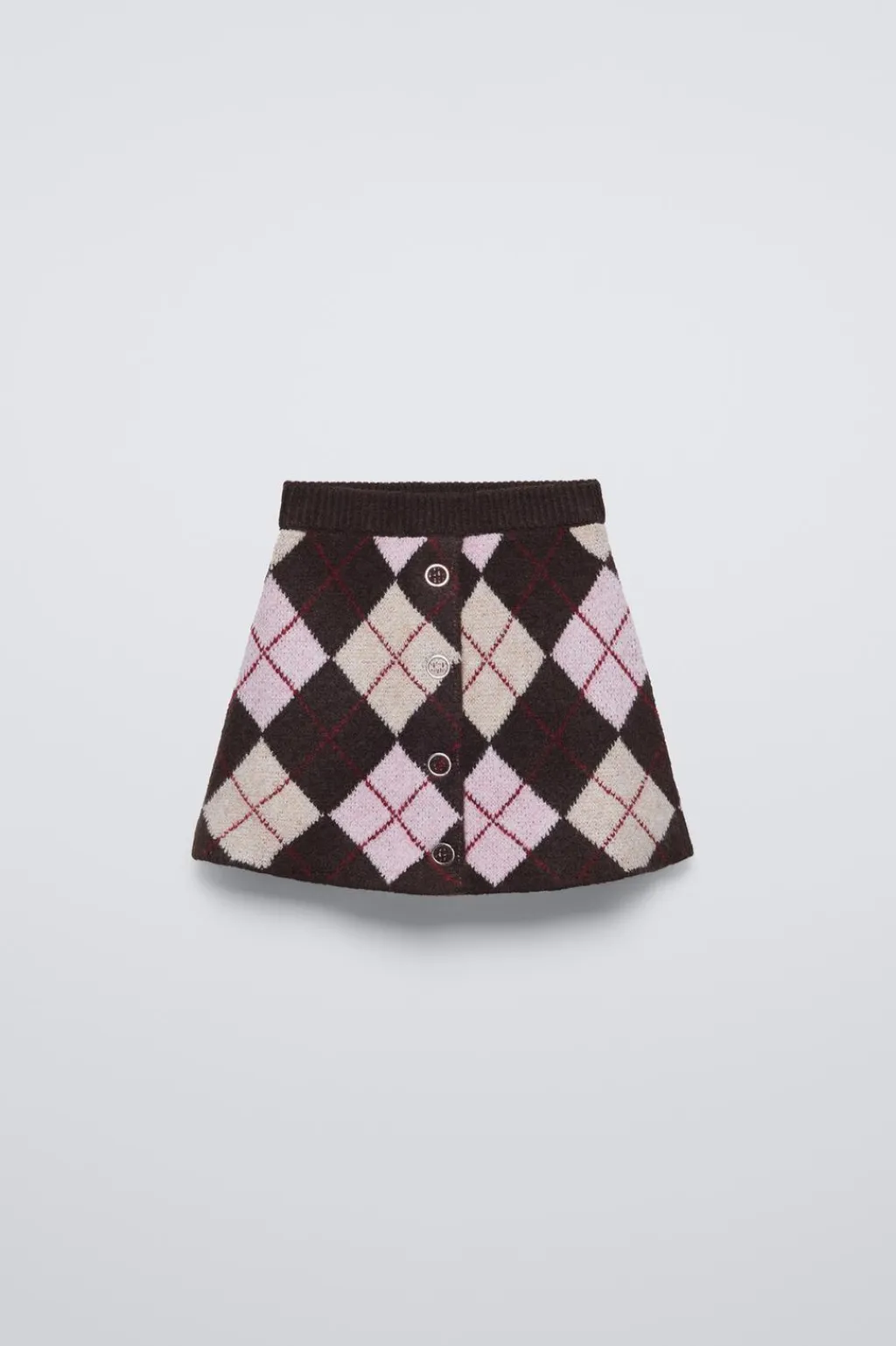 Falda con con cinturilla elástica y cierre botonadura a presión en delantero. Estampado rombos.