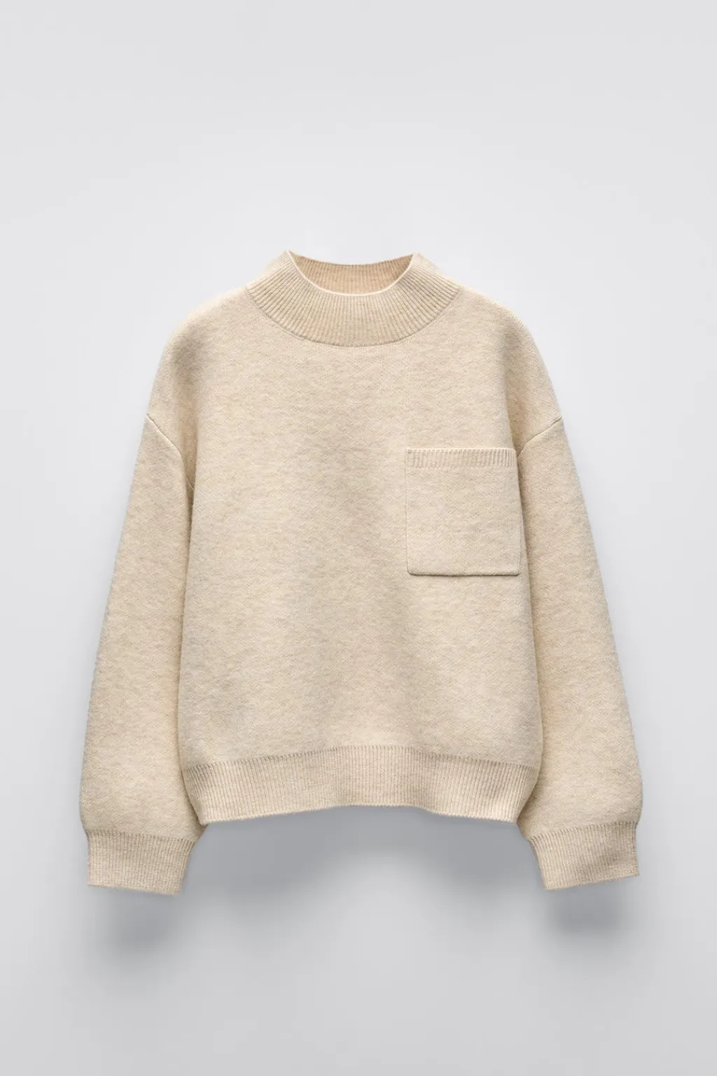 Jersey con cuello subido y manga larga. Bolsillo de tipo plastrón en pechera.