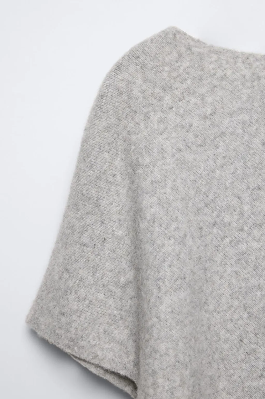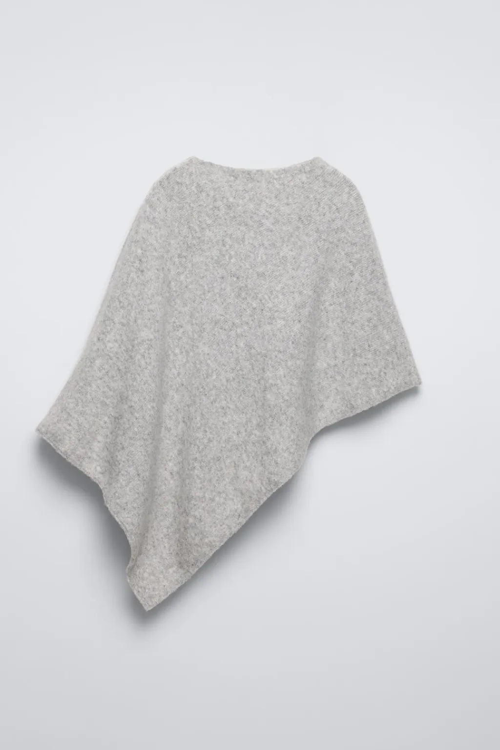 Capa de punto con cuello recto. Bajo acabado asimétrico.