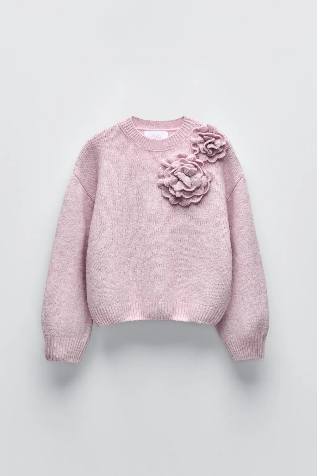 Jersey con cuello redondo y manga larga. Aplique flores 3D en pechera.