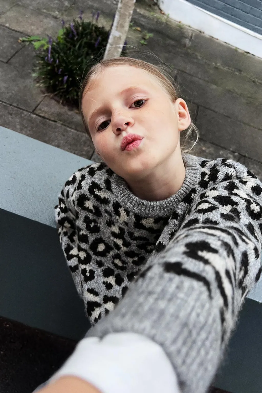 Jersey con cuello redondo y manga larga. Estampado animal print.