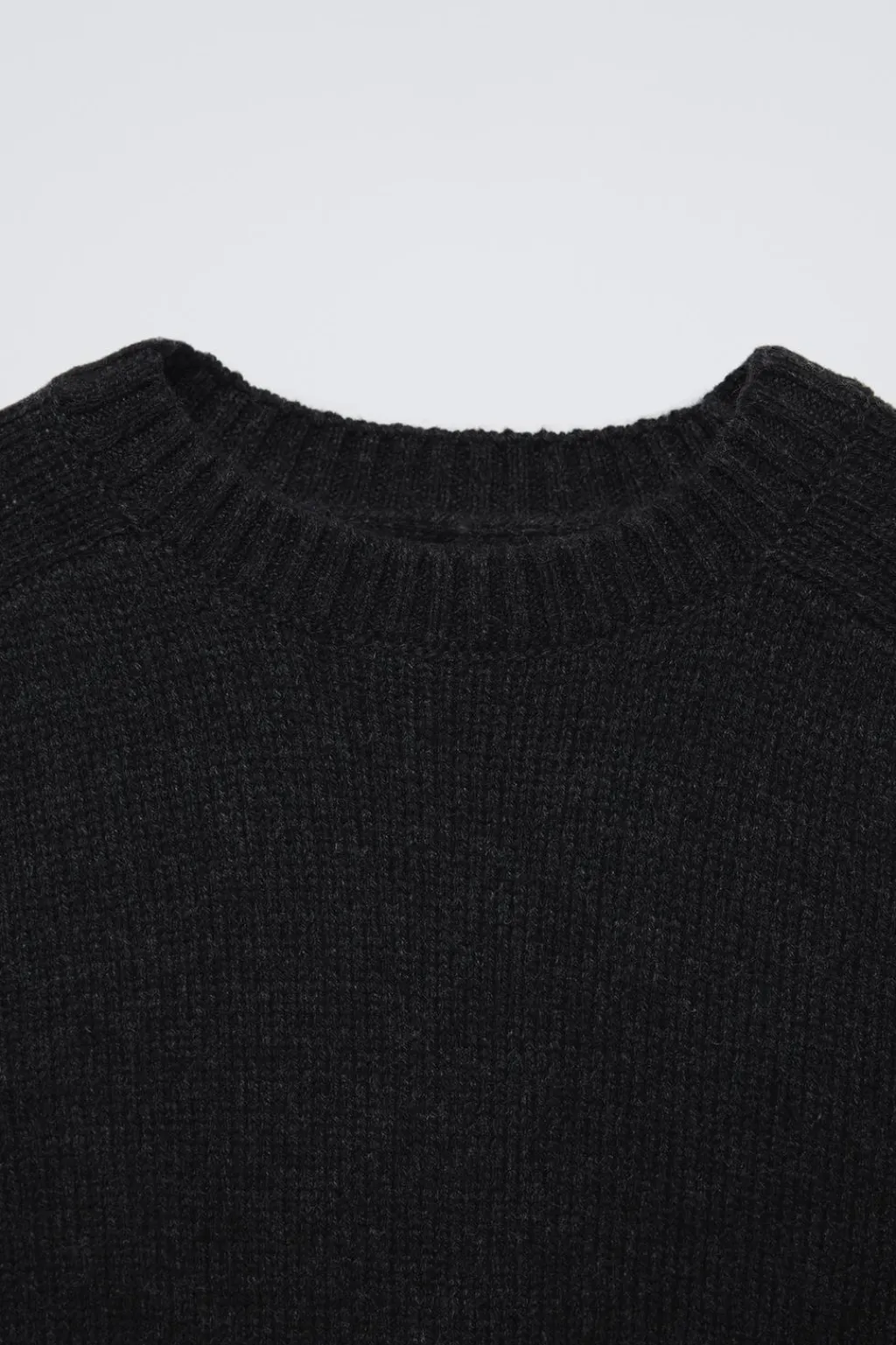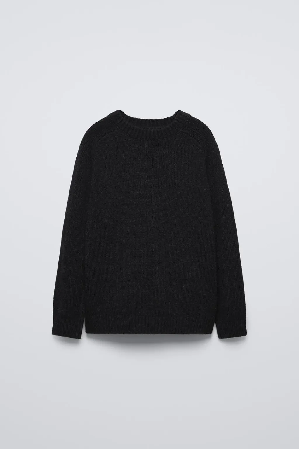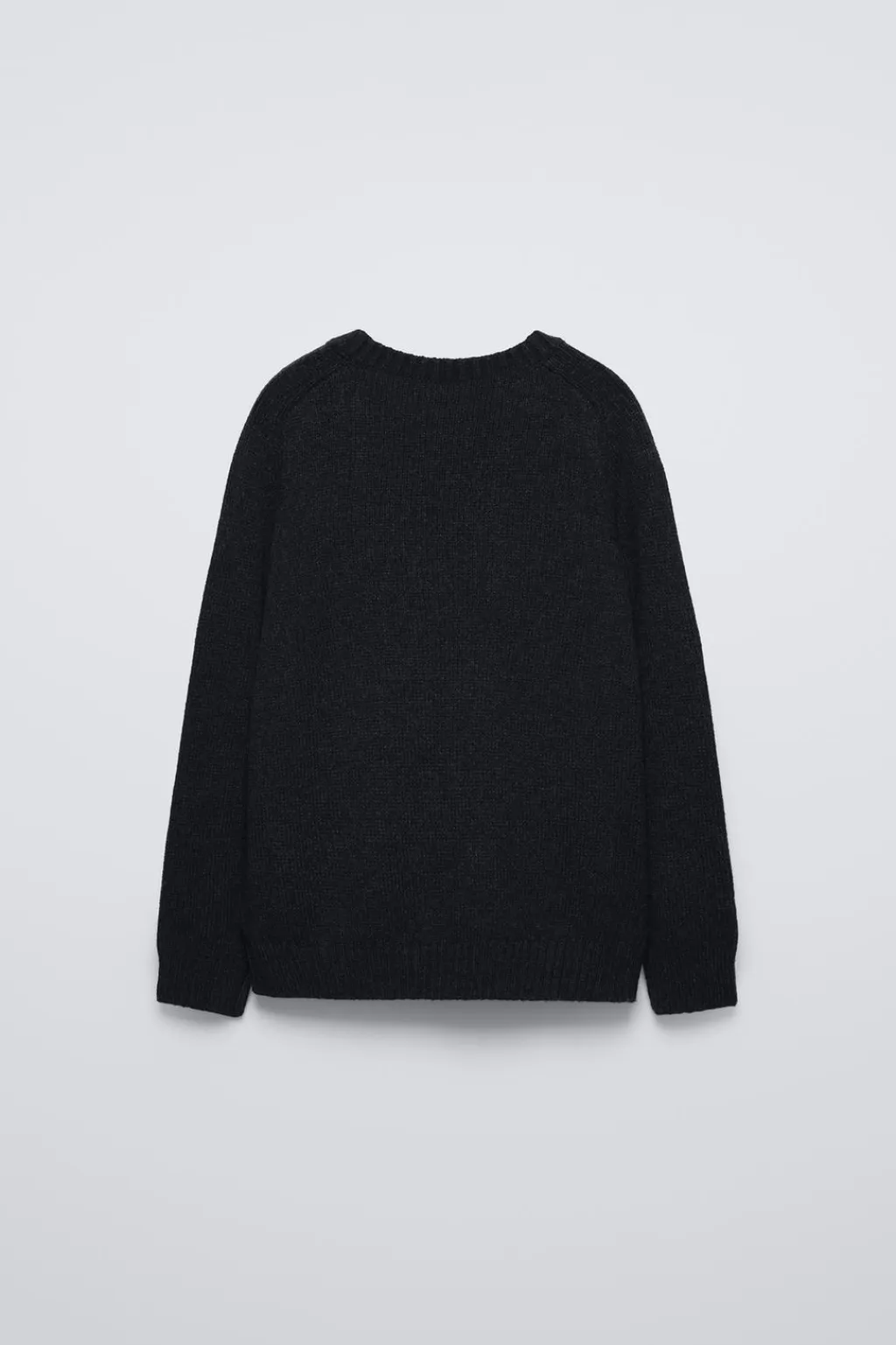 Jersey con un 16% de lana, con cuello redondo y manga larga.
