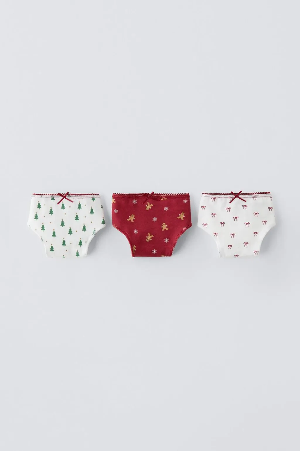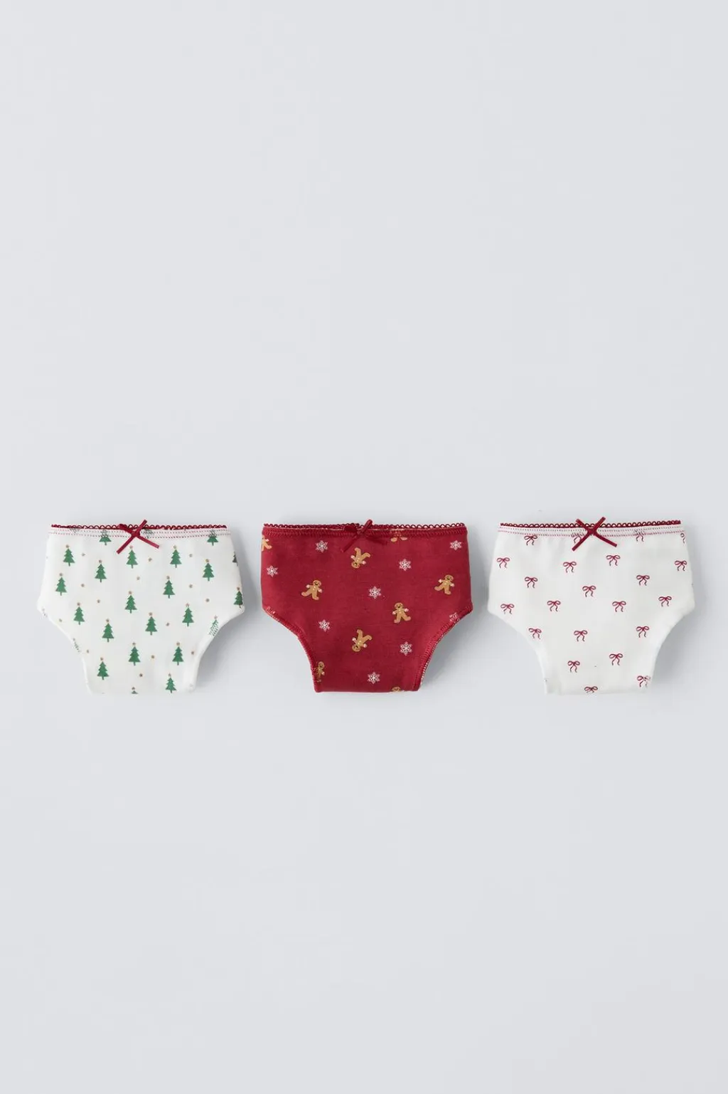 Pack de tres braguitas con cinturilla elástica y aplique lazo frontal. Diferentes estampados.