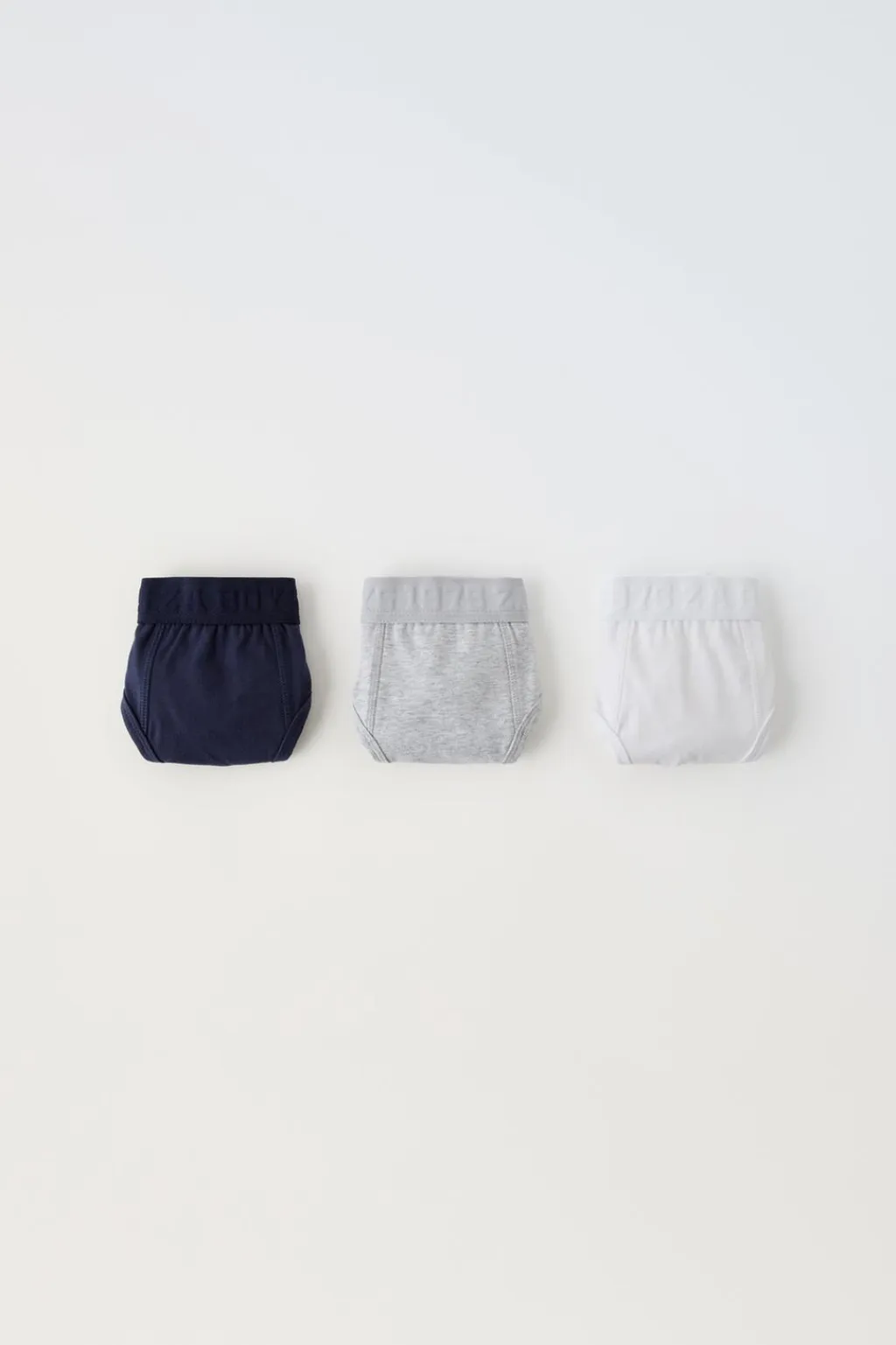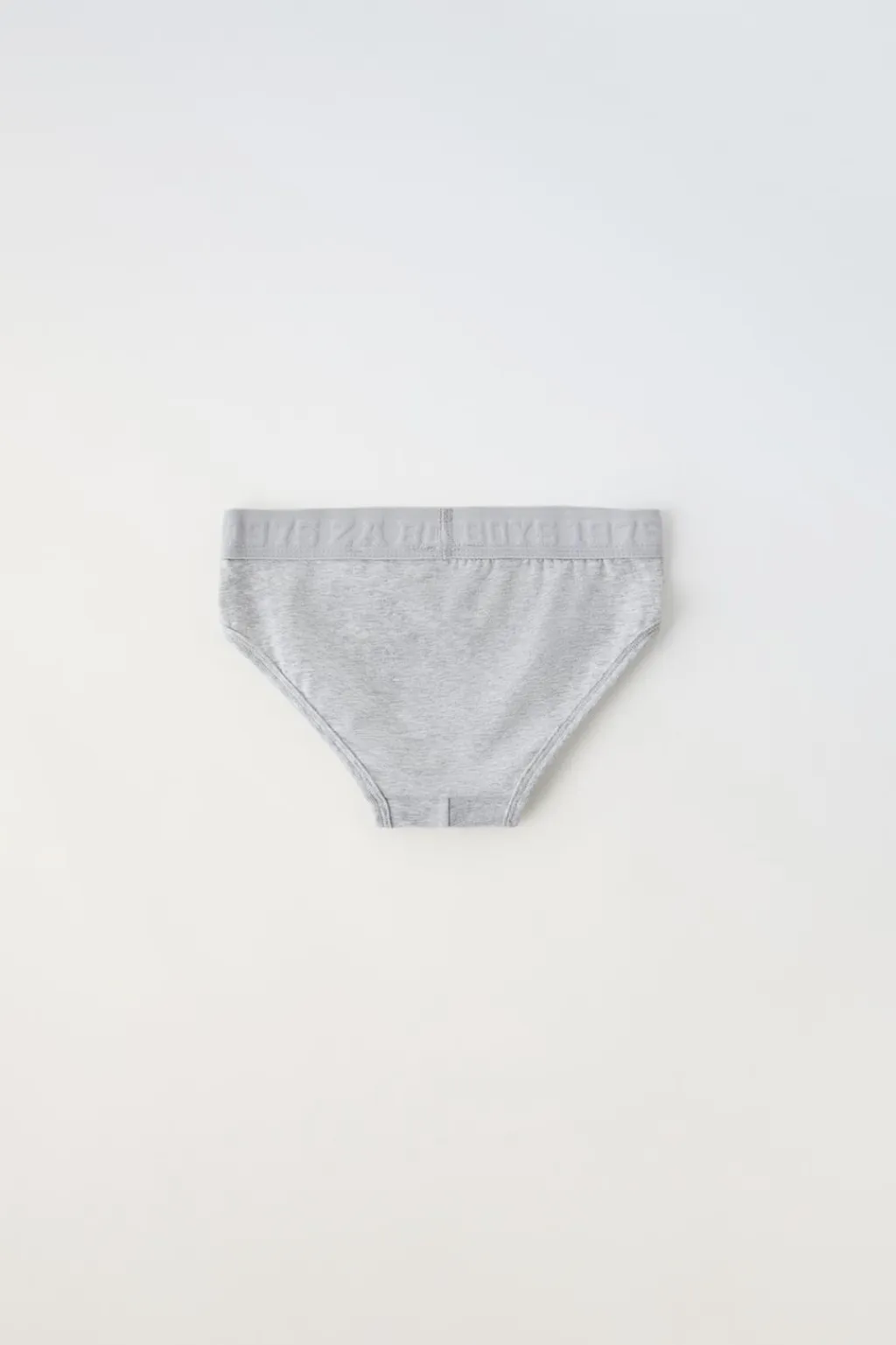 Pack de tres slips con cinturilla elástica. Detalle texto relieve.