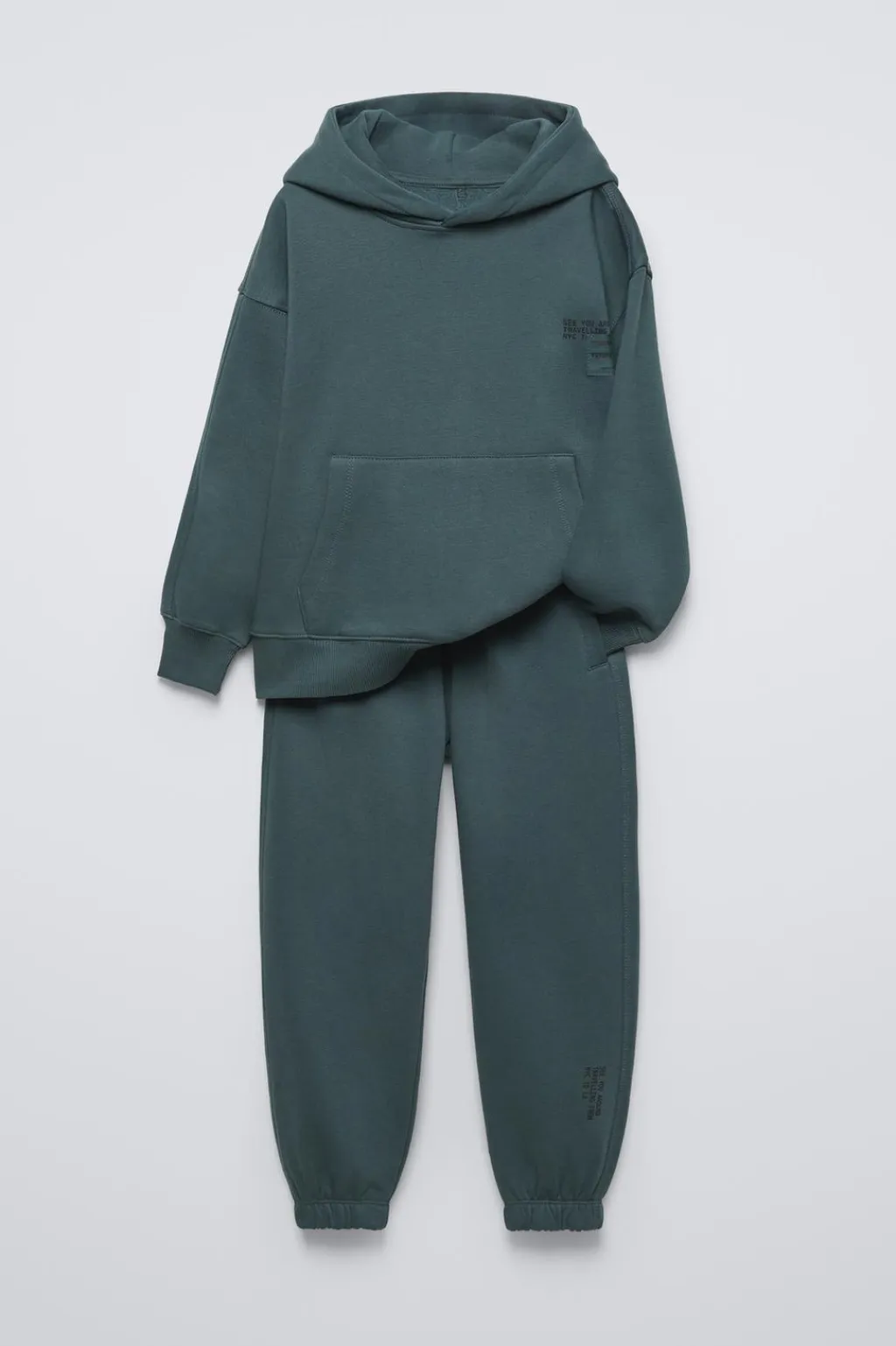 Conjunto dos piezas. Sudadera con capucha y manga larga. Acabados en rib. Bolsillo tipo canguro en delantero. Estampado texto y detalle etiqueta en pechera. Pantalón tipo jogger con cinturilla elástica y cordones ajustables frontal. Bolsillos delanteros. Bajo acabado en puño.
