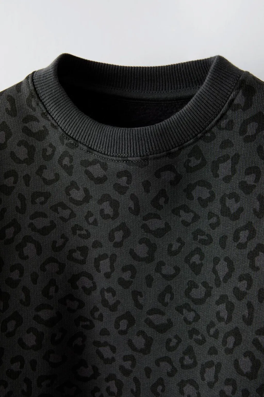 Sudadera con cuello redondo y manga larga. Acabados en rib. Estampado animal print.