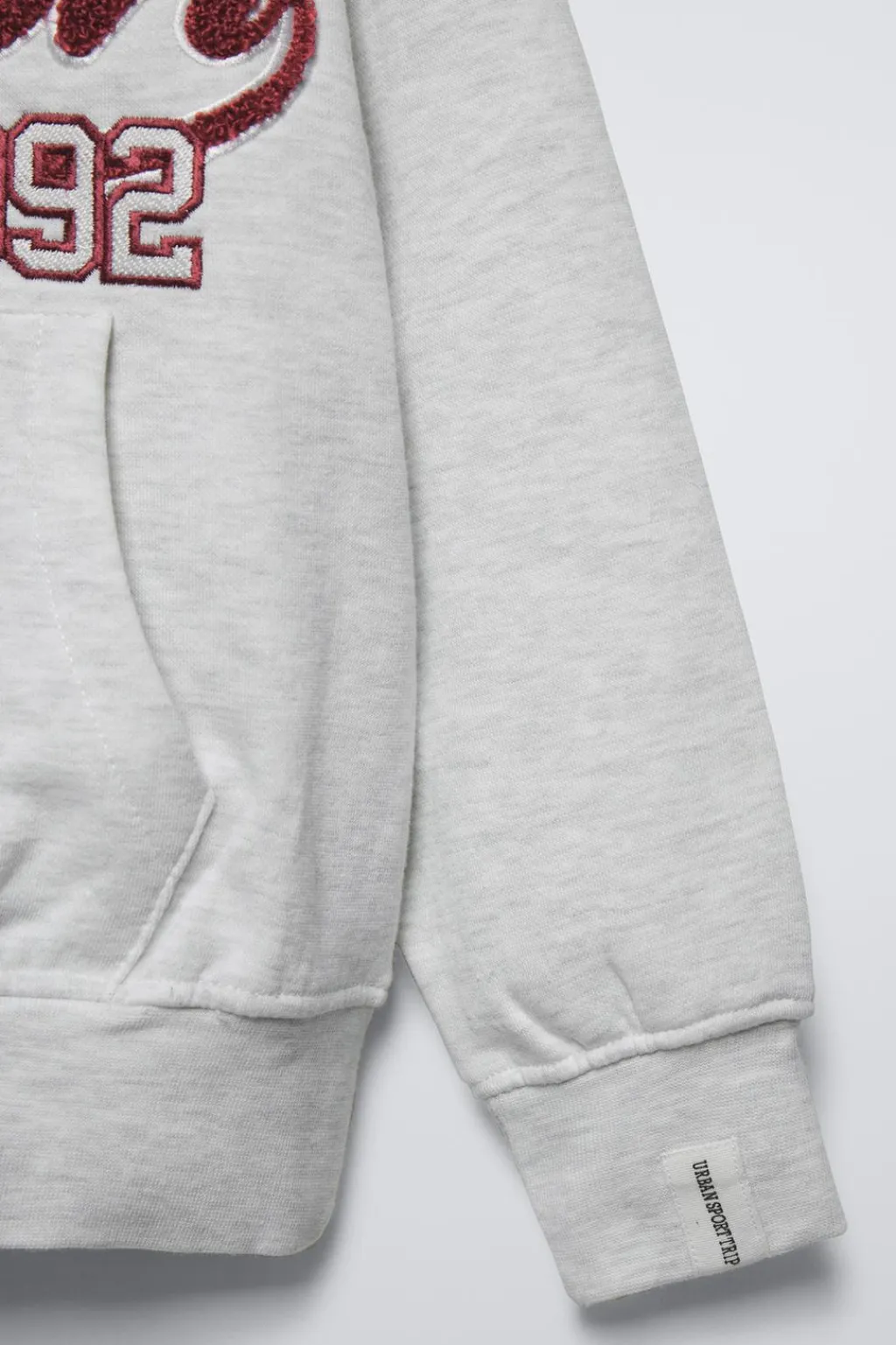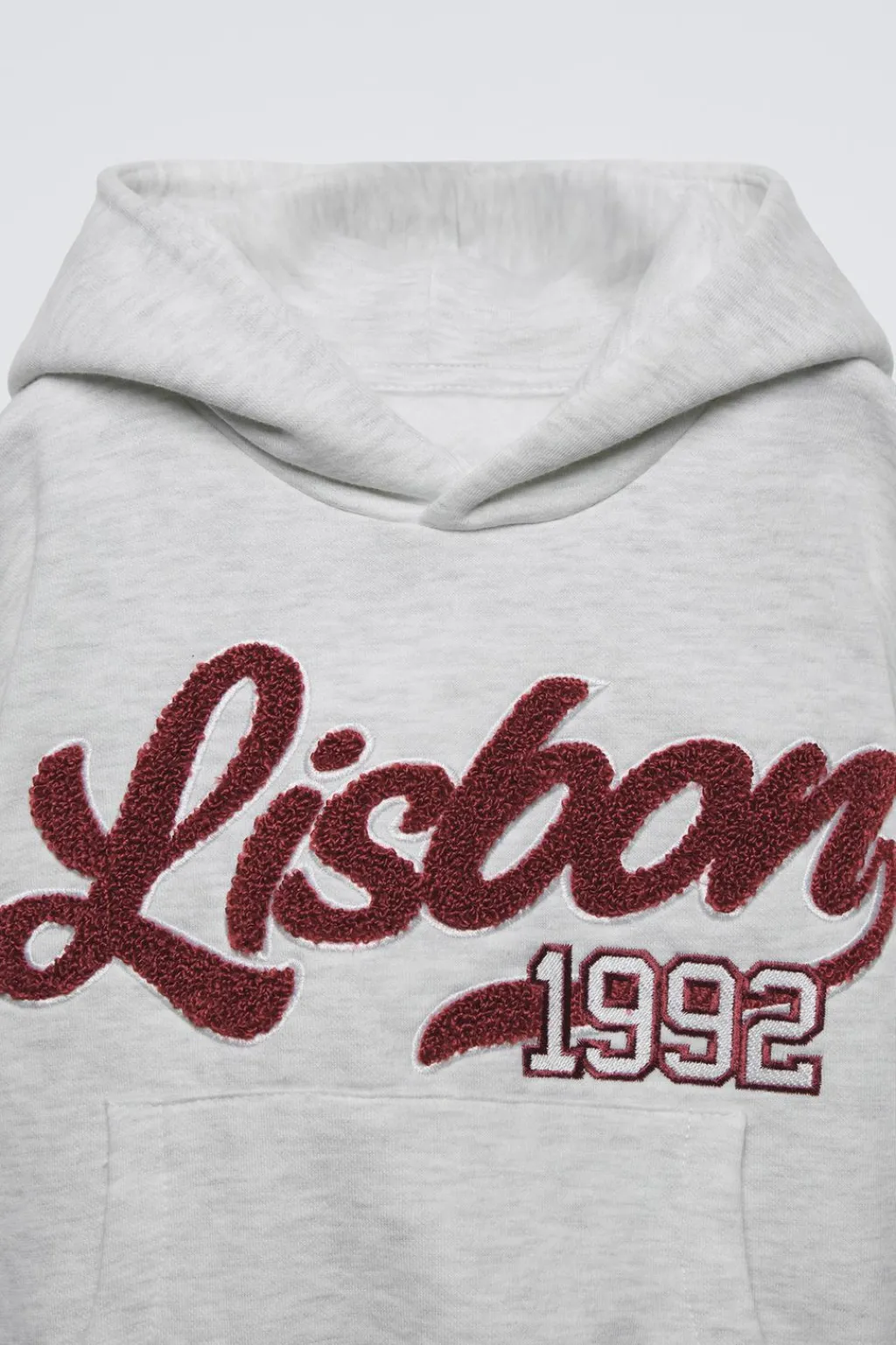 Sudadera con capucha y manga larga. Acabados en rib. Detalle parche texto de rizo en delantero. Calidad interior perchada, cálida y suave.