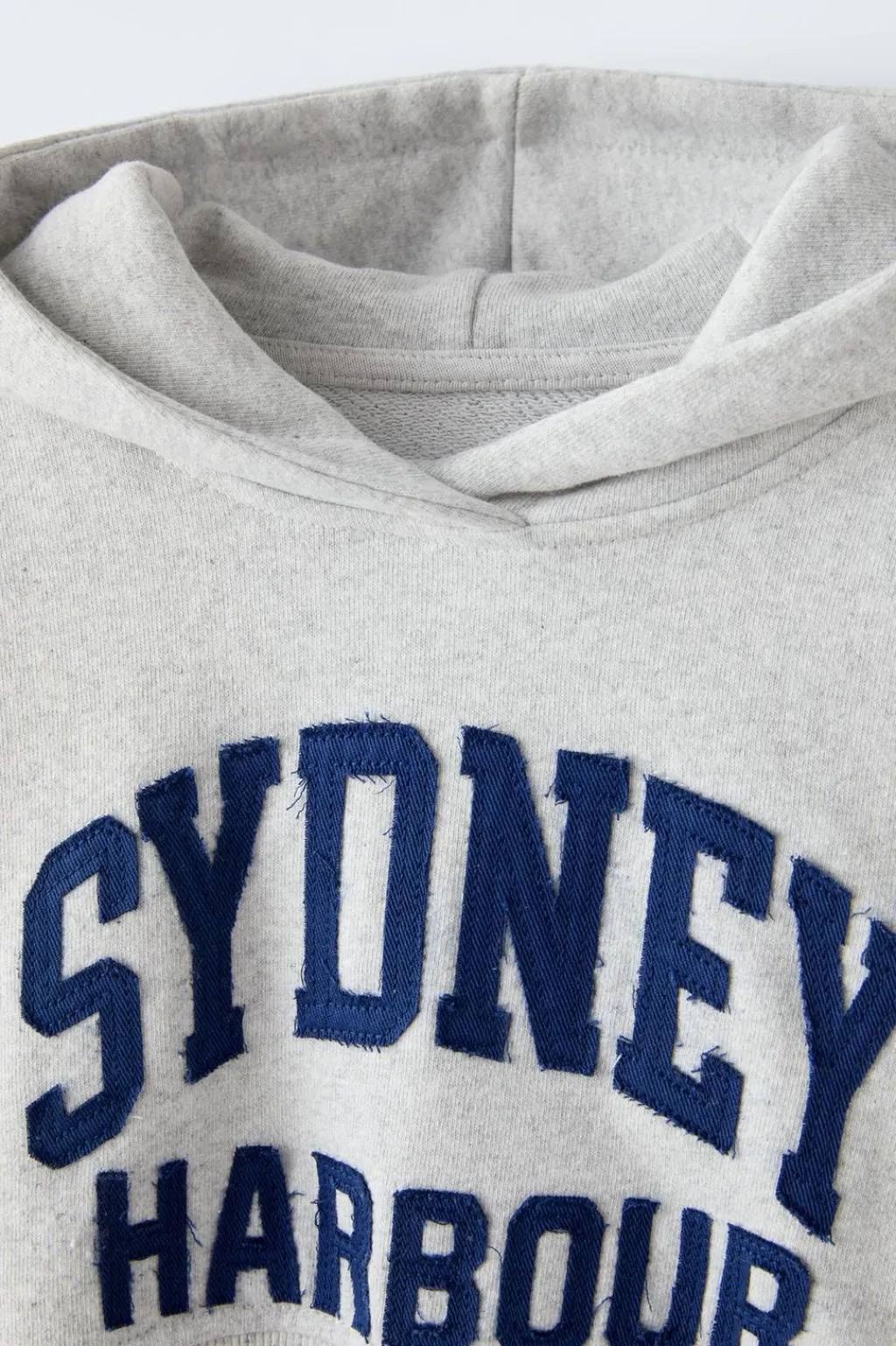 Sudadera tipo crop con capucha y manga larga. Acabados en rib. Detalle texto en delantero.