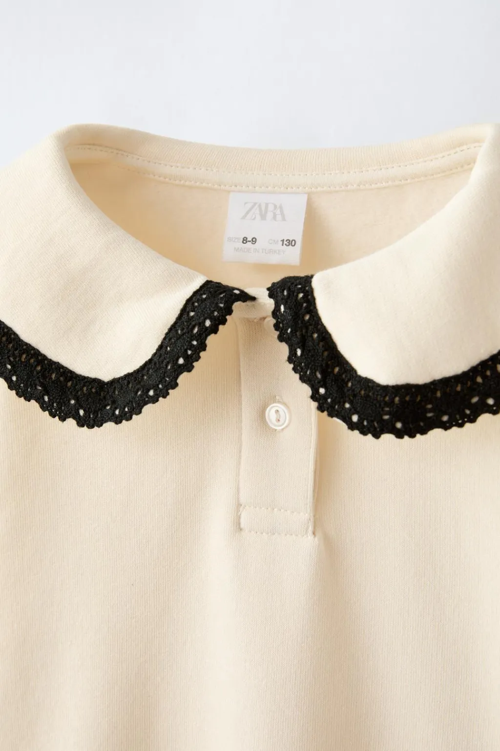 Sudadera con cuello bobo detalle blonda y manga larga. Cierre con botones en pechera. Acabados en rib. Calidad interior cálida y suave.