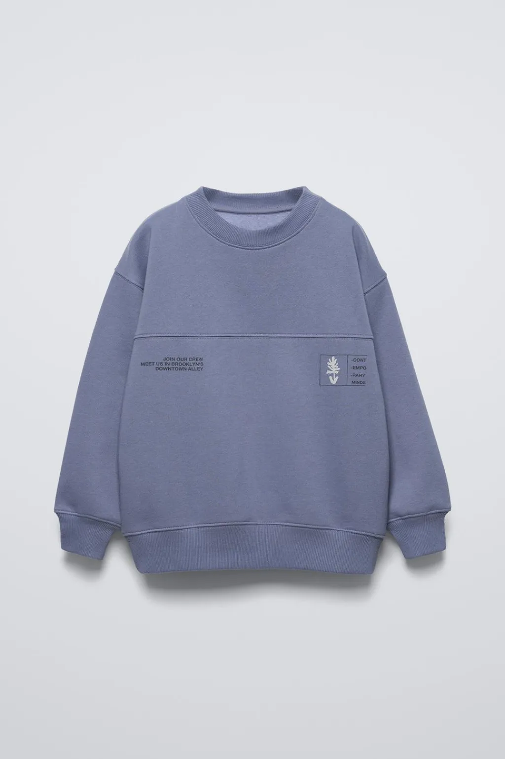 Sudadera con cuello redondo y manga larga. Acabados en rib. Estampado en delantero y espalda. Detalle corte en pechera. Calidad interior cálida y suave.