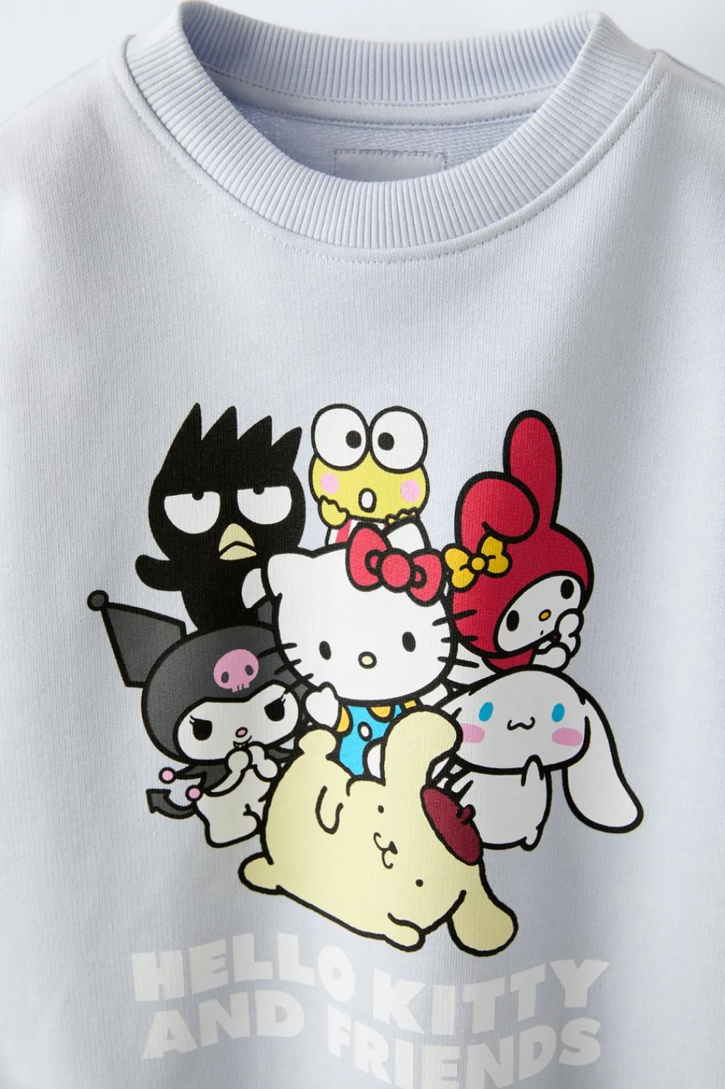 Sudadera con cuello redondo y manga larga. Acabados en rib. Estampado HELLO KITTY AND FRIENDS © en delantero y espalda.