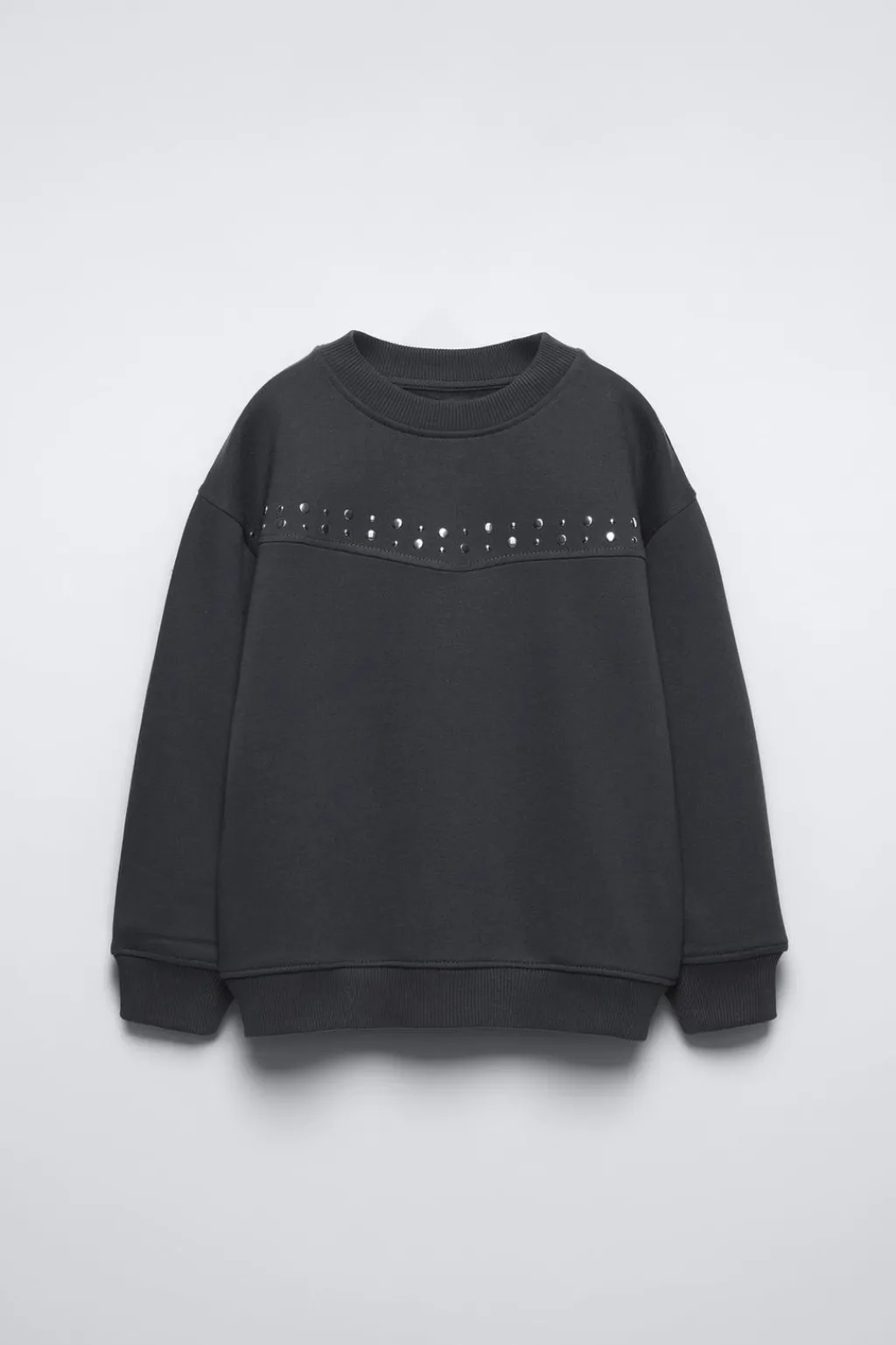 Sudaderas con cuello redondo y manga larga. Aplique tachas en delantero. Acabados en rib. Calidad interior cálida y suave.