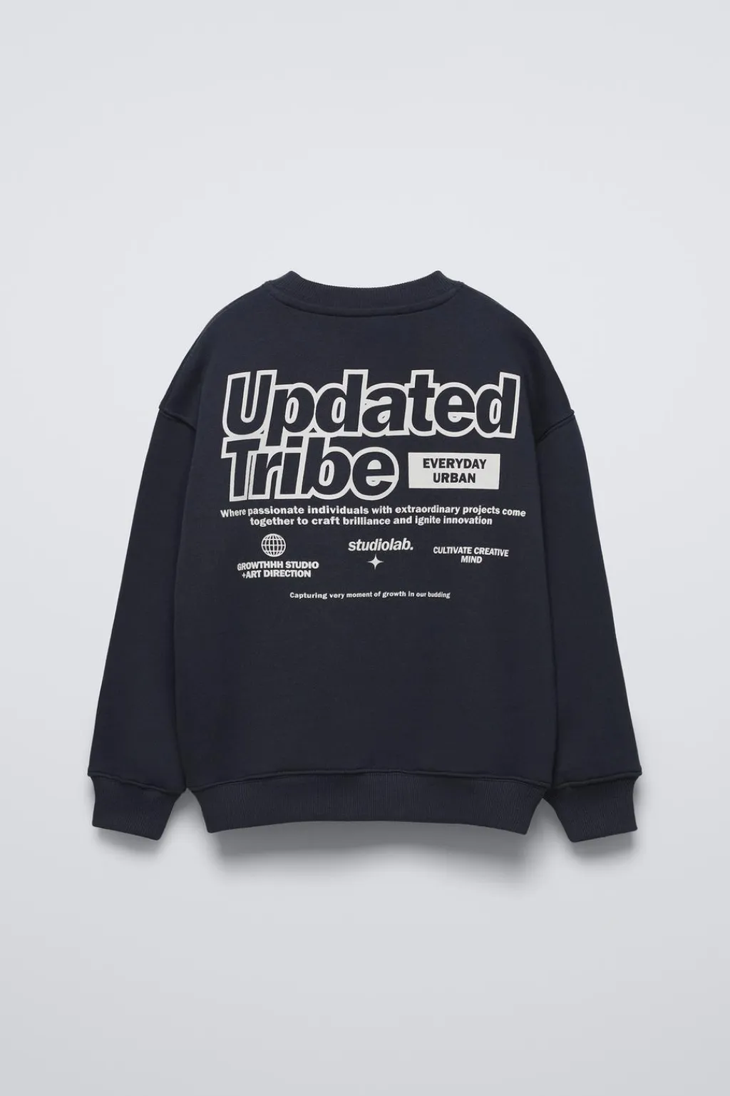 Sudadera con cuello redondo y manga larga. Acabados en rib. Estampado texto en delantero y espalda. Aplique etiqueta en lateral.
