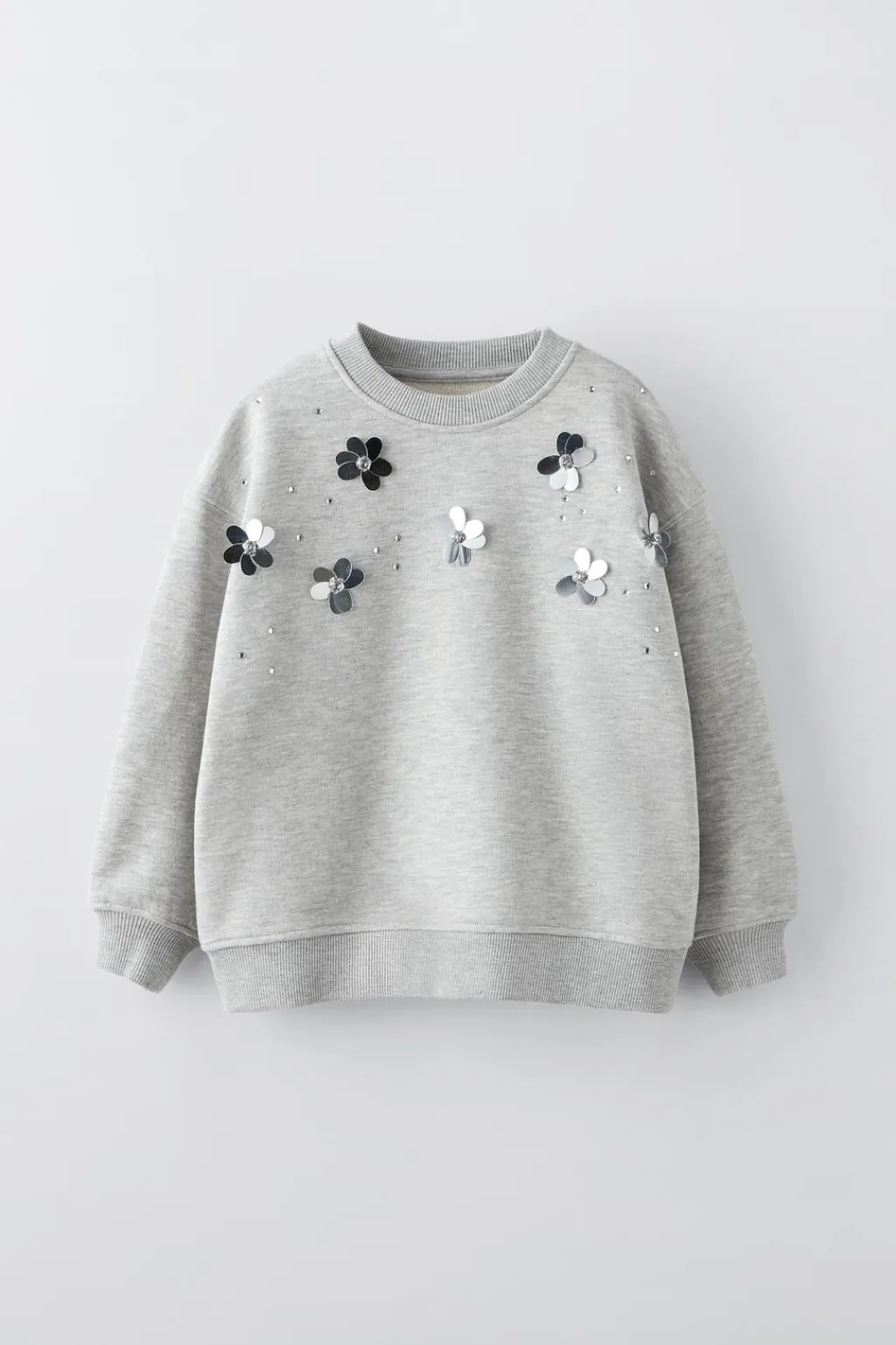 Sudadera con cuello redondo y manga larga. Acabados en rib. Aplique flores 3D en delantero.