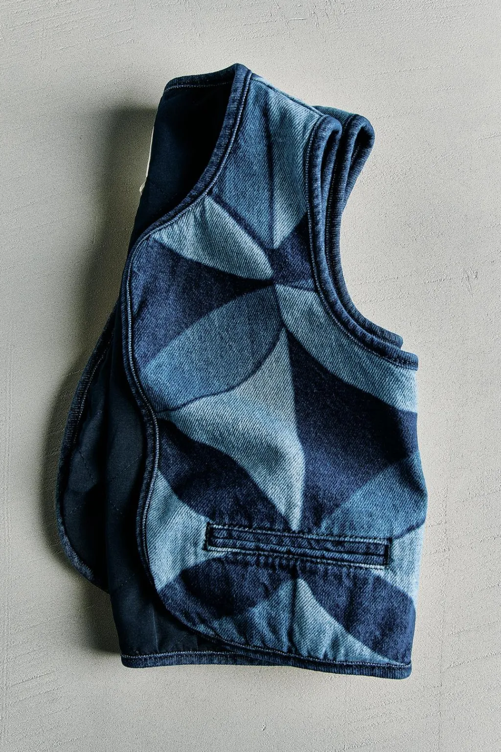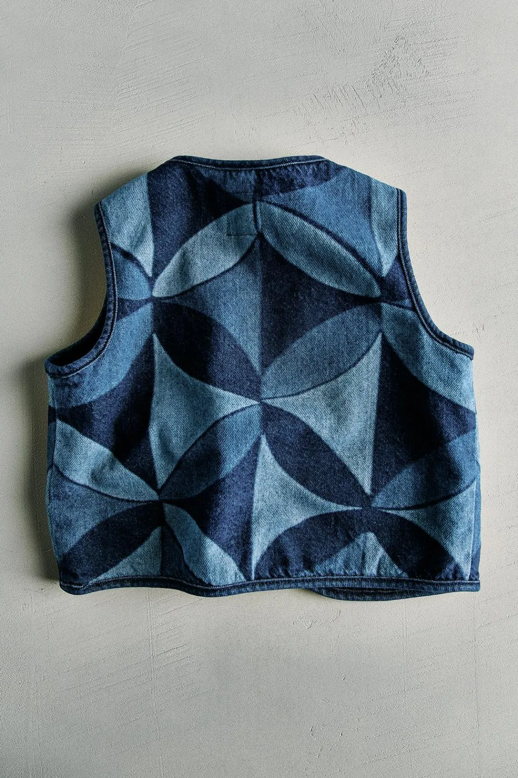 Chaleco confeccionado en tejido denim con estampado geométrico.
