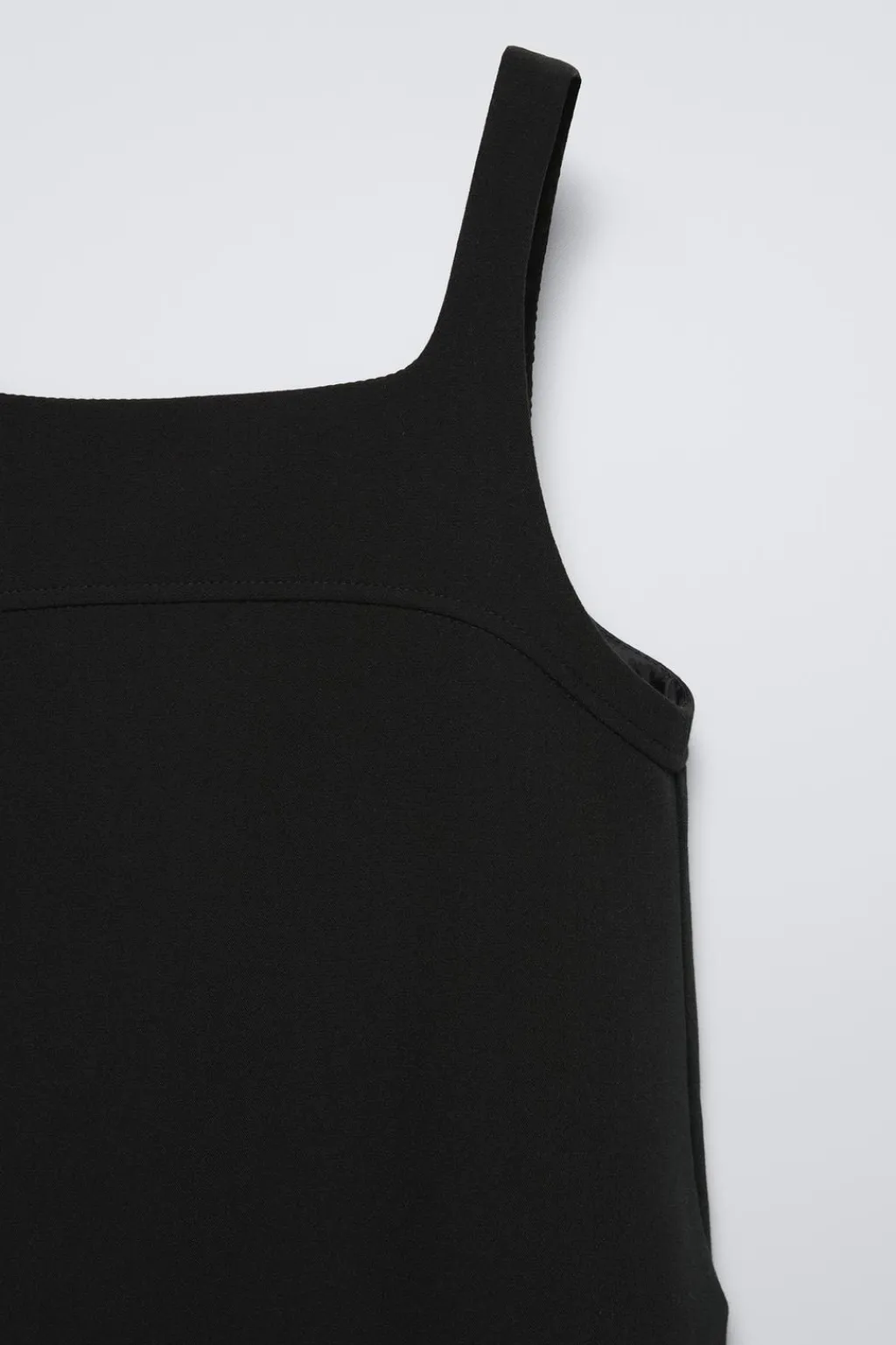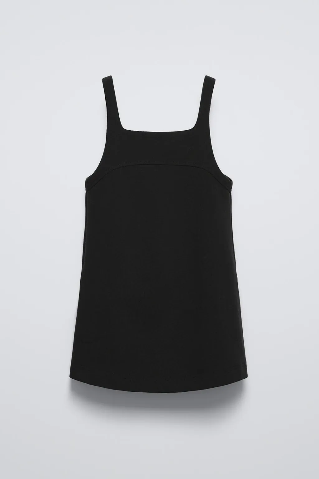 Pichi con cuello recto y tirantes. Bolsillos en delantero.