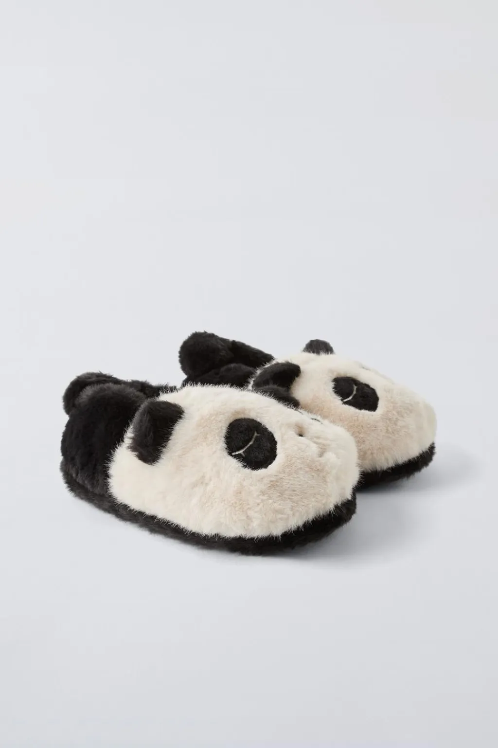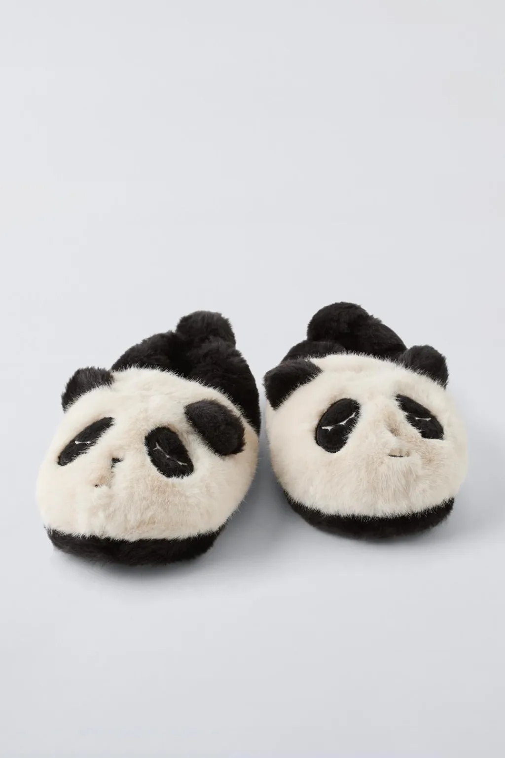 Zapatillas de casa en forma de oso panda acabado en pelo. Suela de goma.