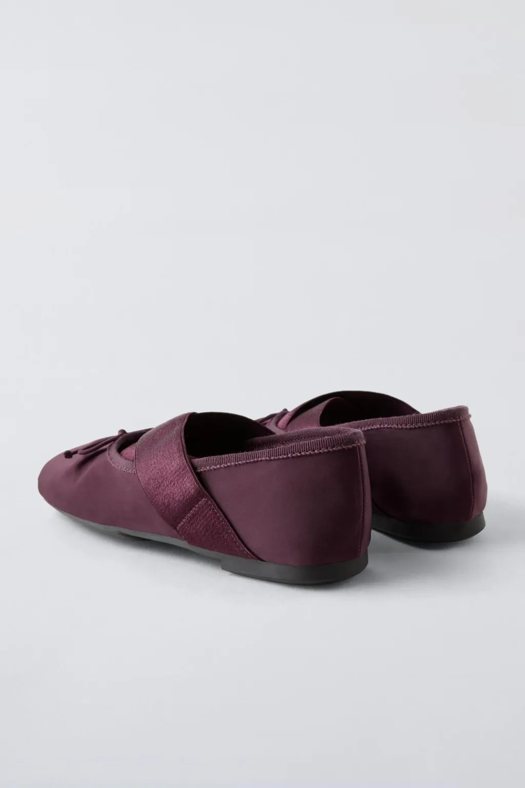 Zapato tipo bailarina efecto raso con detalle puntera cuadrada. Tira cruzada elástica en el empeine para una mejor sujeción. Plantilla flexible. Suela de goma.