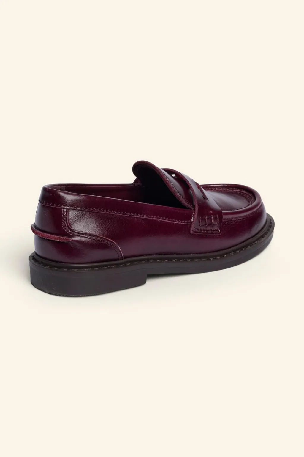Zapato tipo mocasín acharolado 100% piel vacuno con el detalle de antifaz en el empeine y ribeteado en el corte. Plantilla flexible 100% piel de ovina. Suela de goma.