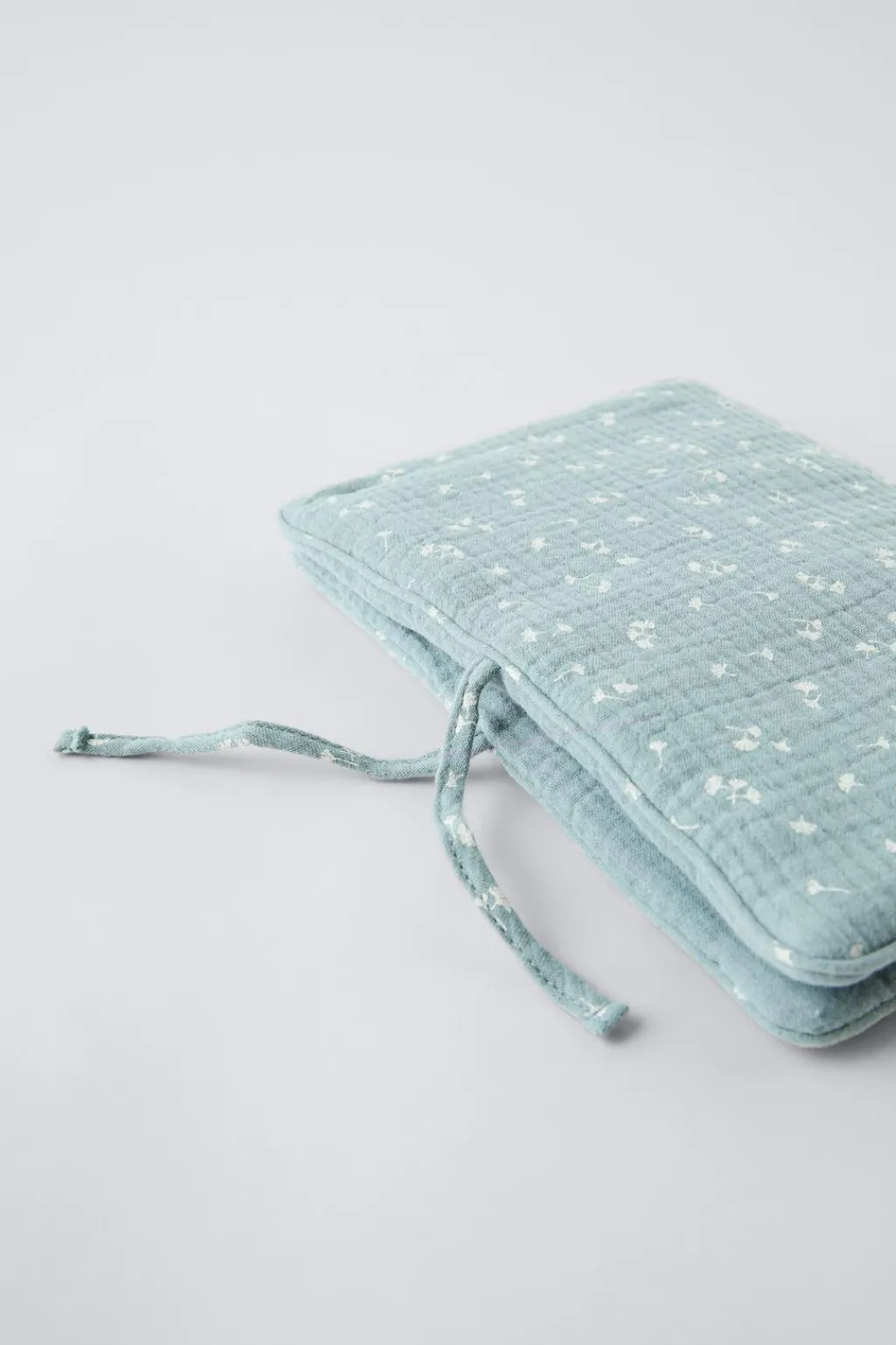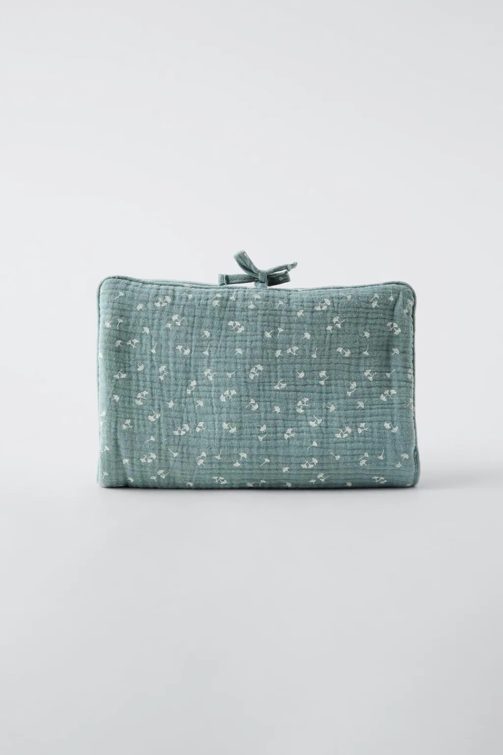 Portatoallitas con dos compartimentos y cierre con lazada.