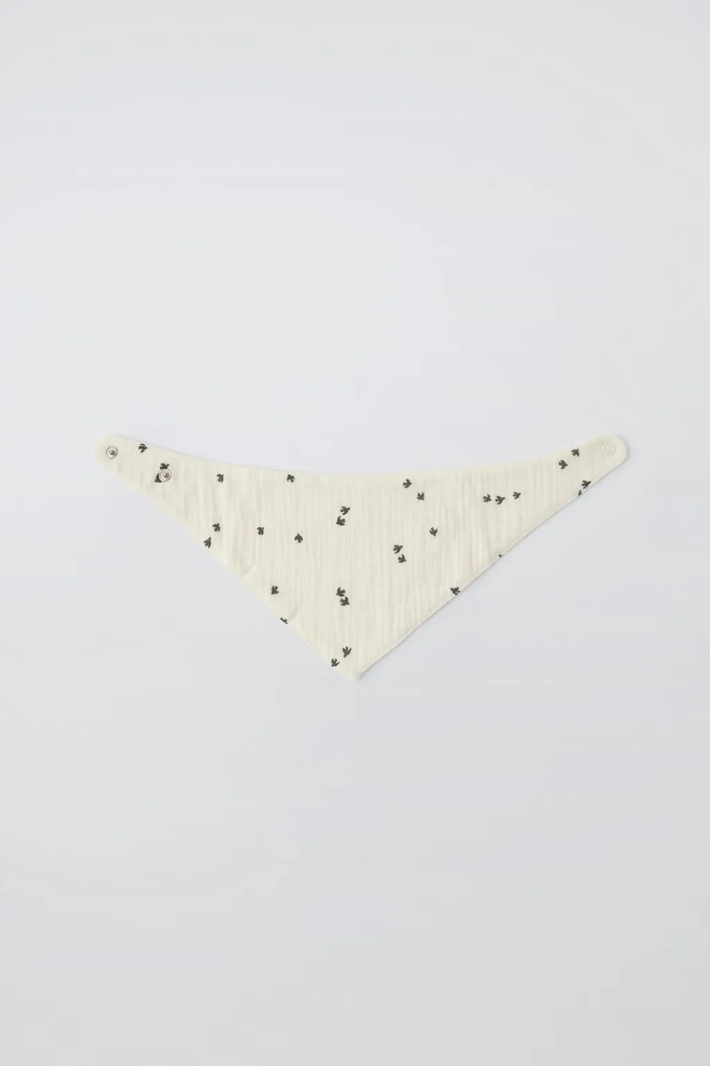 Bandana triangular con cierre ajustable de botones tipo presión.