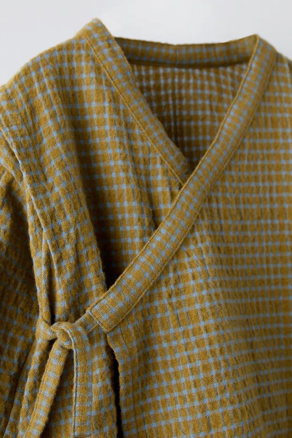 Conjunto dos piezas. Camisa tipo kimono con cierre cruzado y manga larga. Pantalón con cinturilla elástica.
