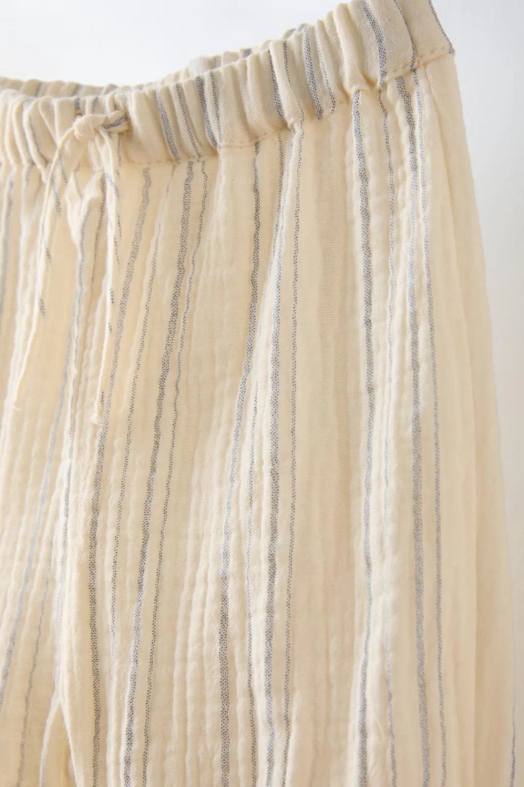 Pantalón con cinturilla elástica y aplique cordones frontal. Bajo acabado en goma.