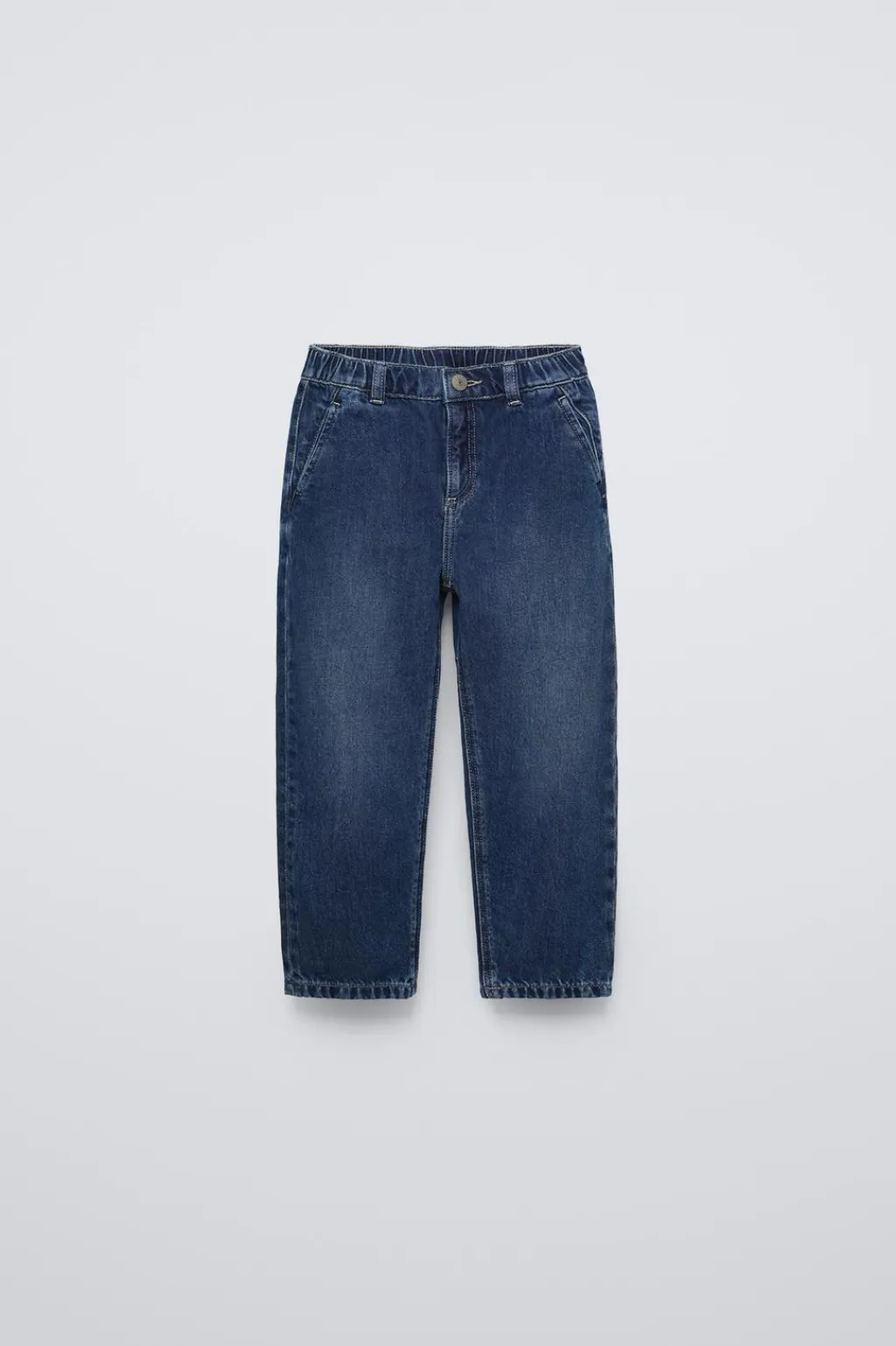 Jeans con cinturilla elástica y cierre botón tipo presión en delantero. Bolsillos de tipo vivo en delantero y tipo plastrón en espalda con aplique etiqueta.