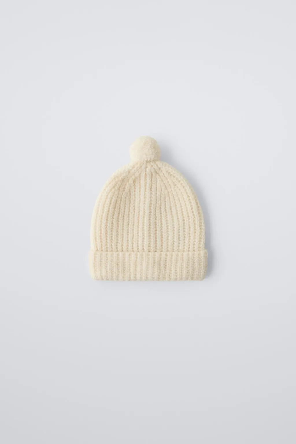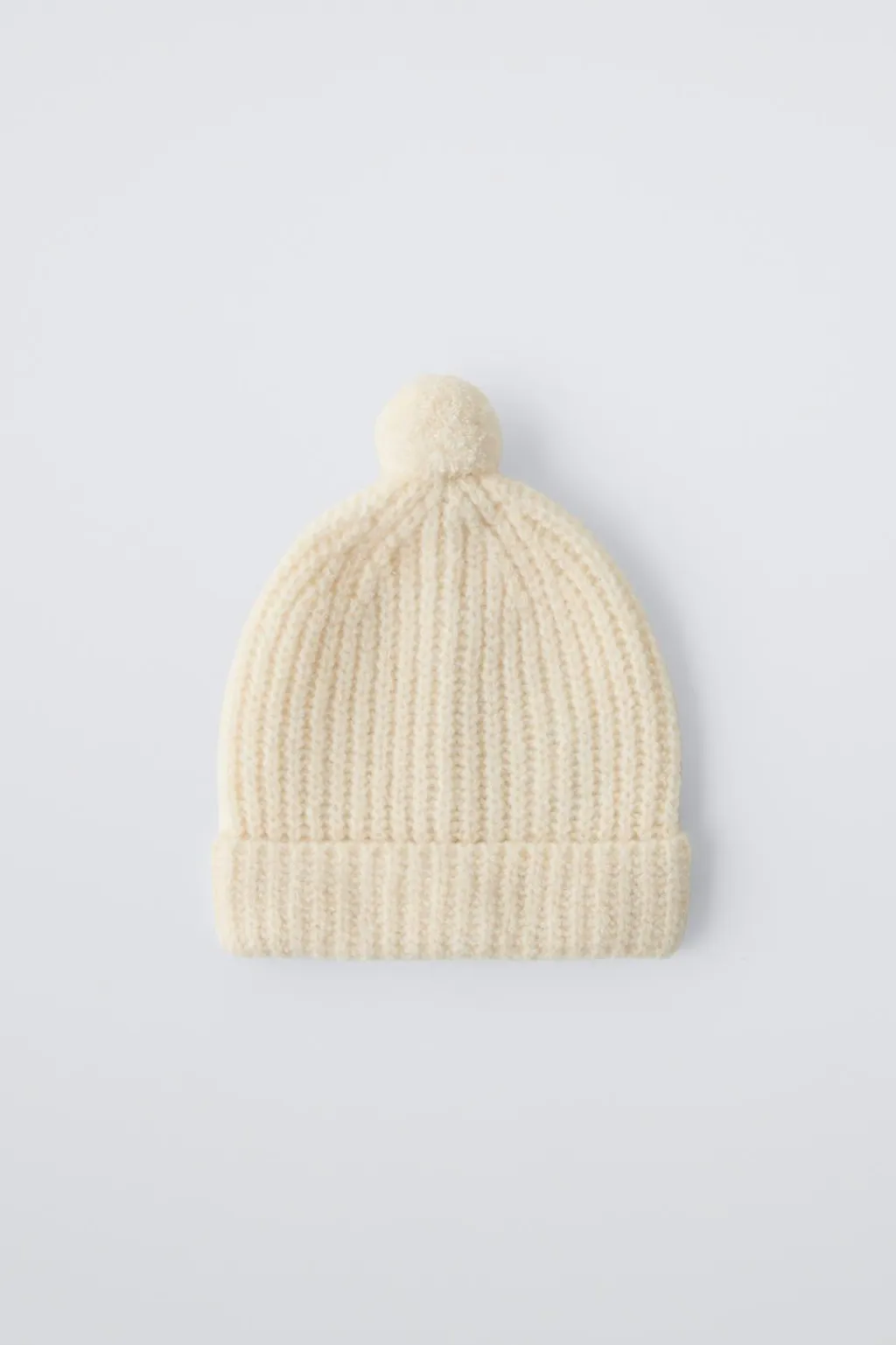 Gorro de punto con bajo acabado en vuelta. Aplique pompón.