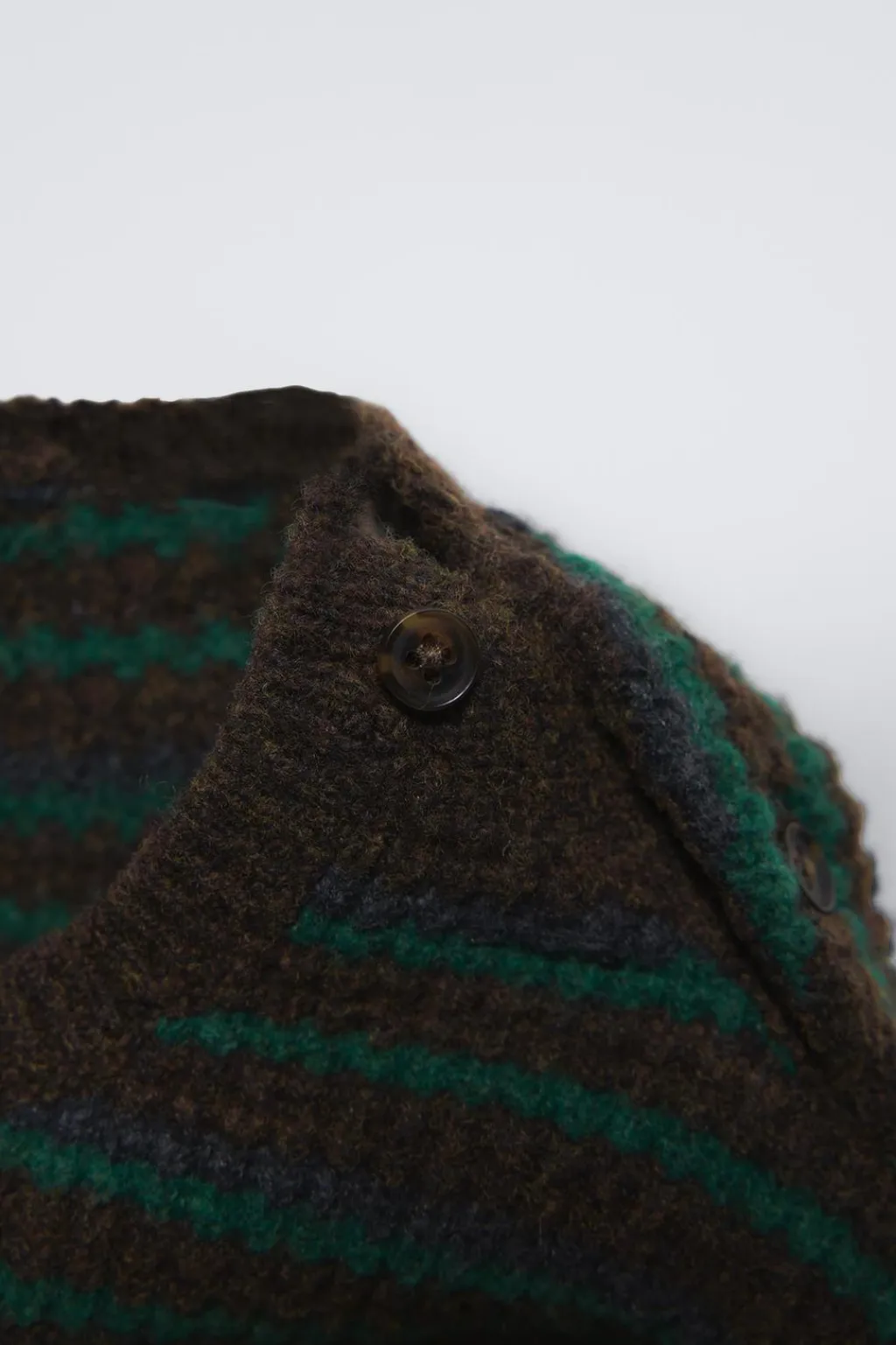 Jersey de punto con cuello redondo y manga larga acabada en vuelta. Cierre botonadura en hombro. Estampado rayas. Aplique etiqueta oso en bajo.