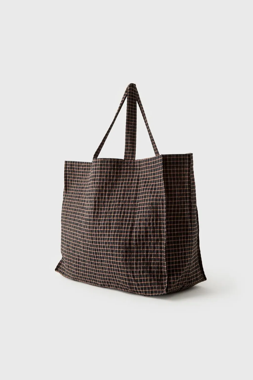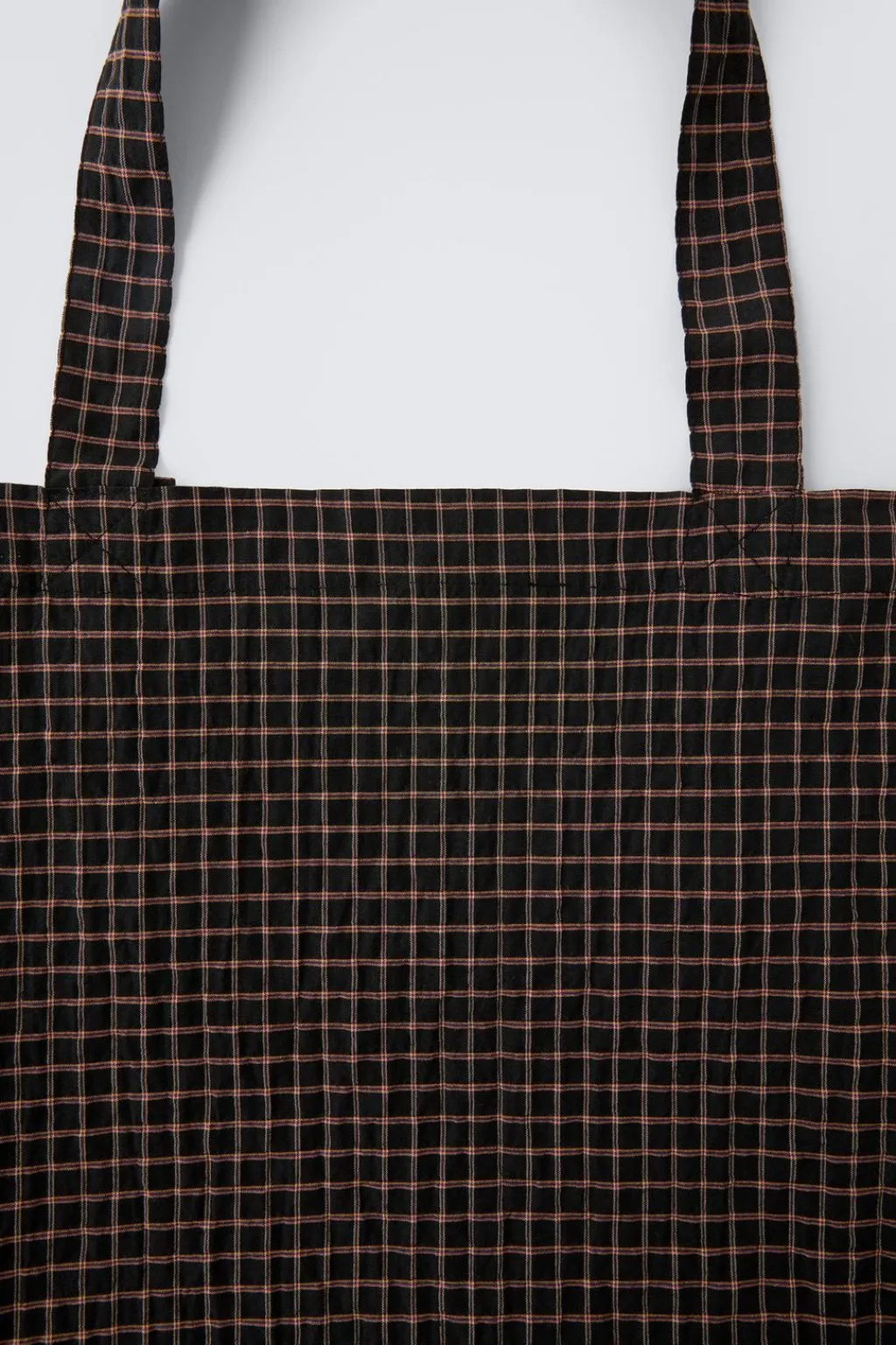Bolso tipo shopper con estampado de cuadros. Doble asa de hombro.