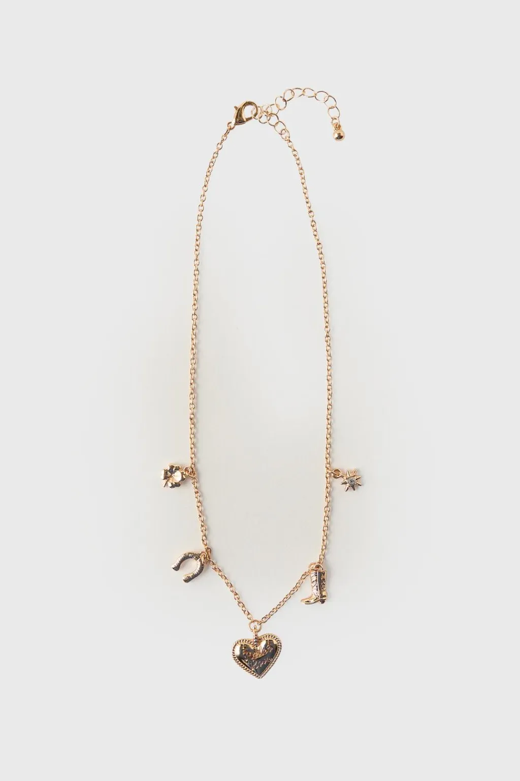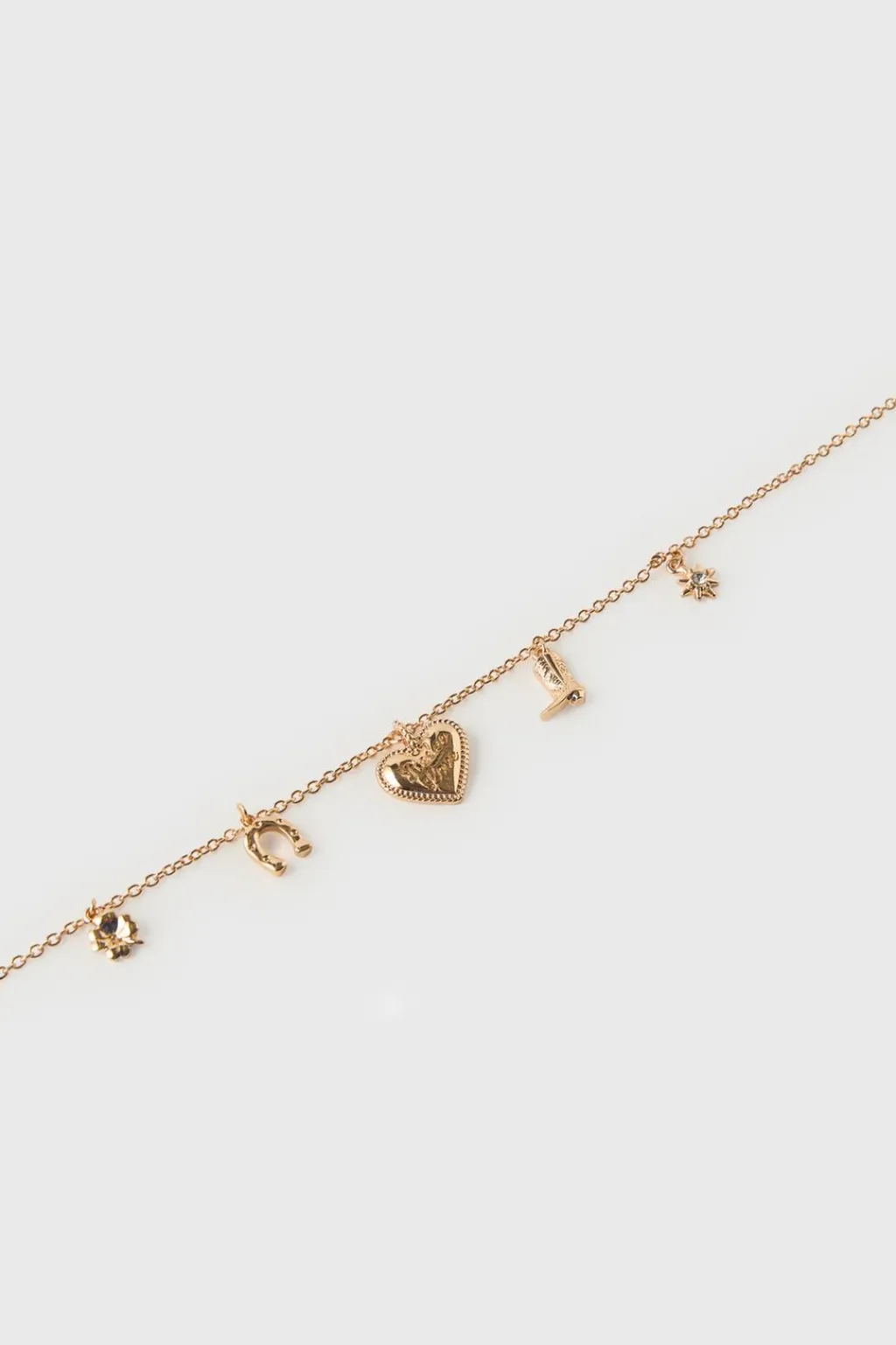 Collar con cierre ajustable en nuca. Detalle charms de diferentes formas.