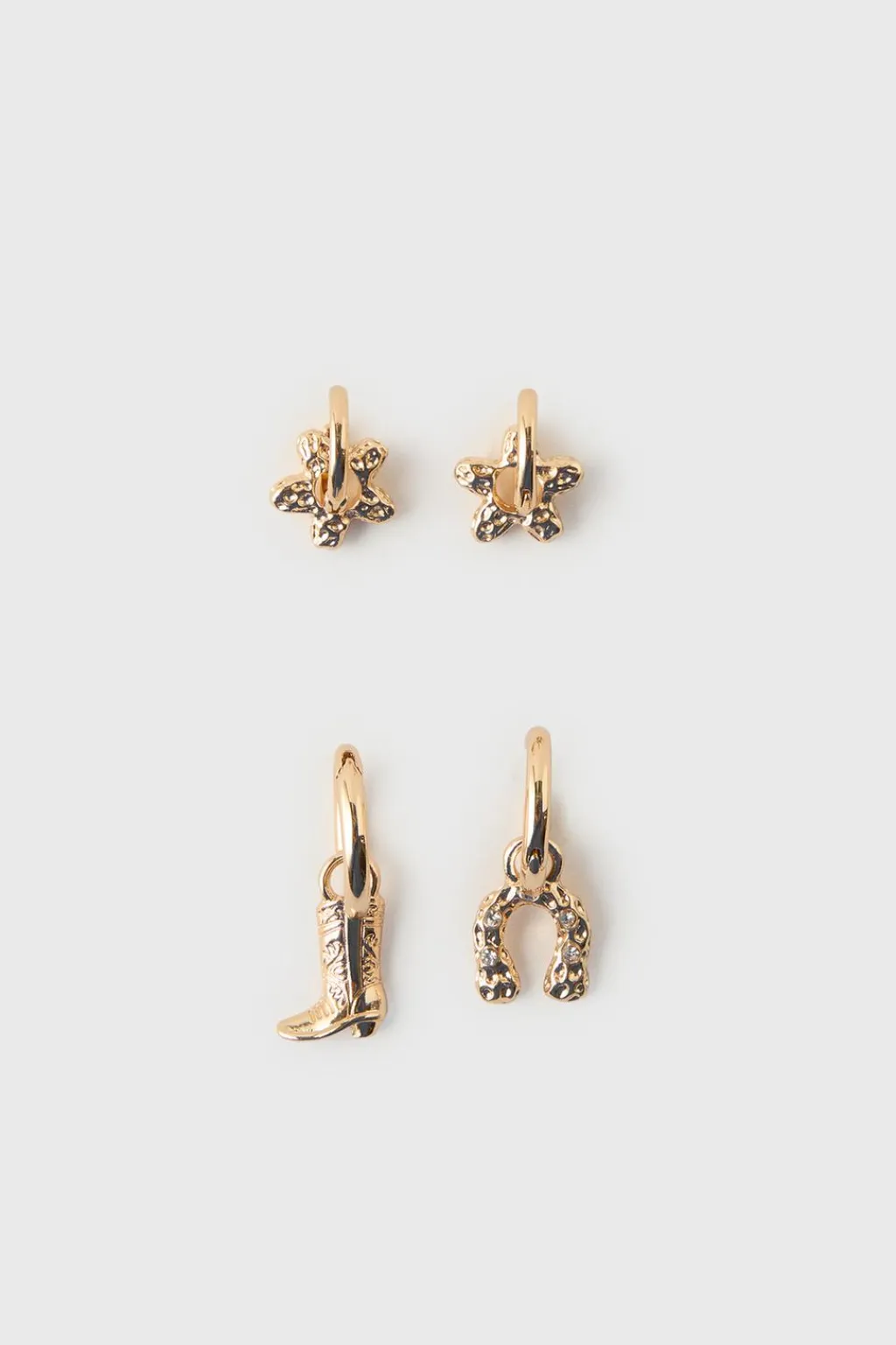 Pack de dos pares de pendientes con cierre presión. Detalle de charms con diferentes formas intercambiables.