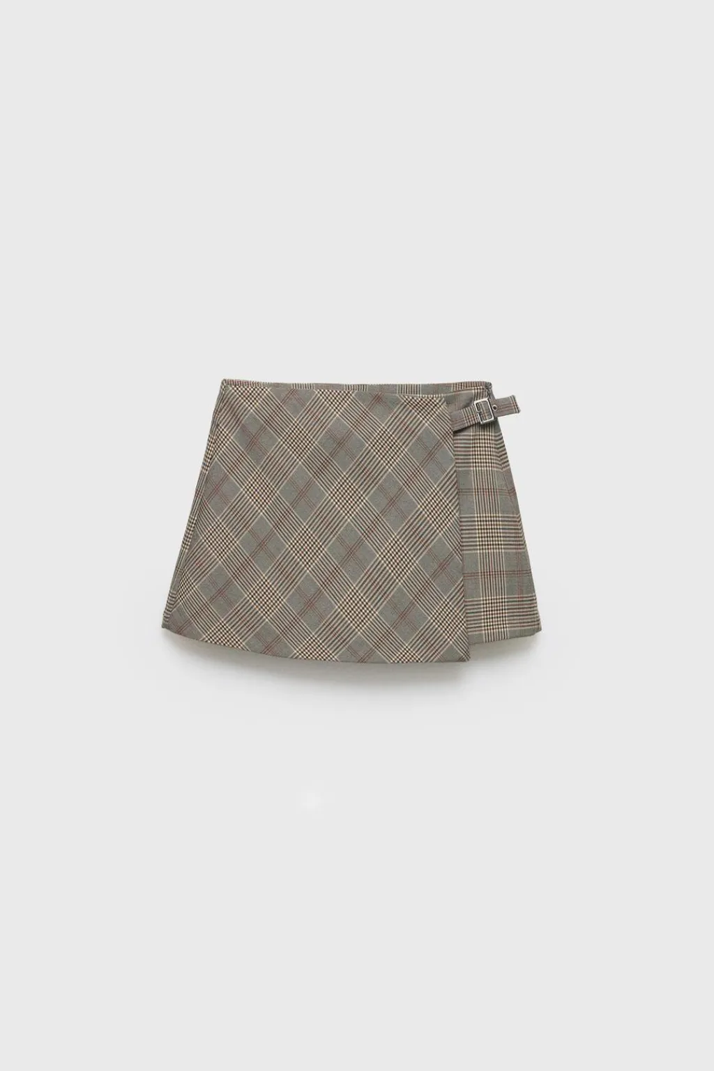 Falda tipo bermuda con cierre cremallera oculta en lateral y aplique hebilla metálica.