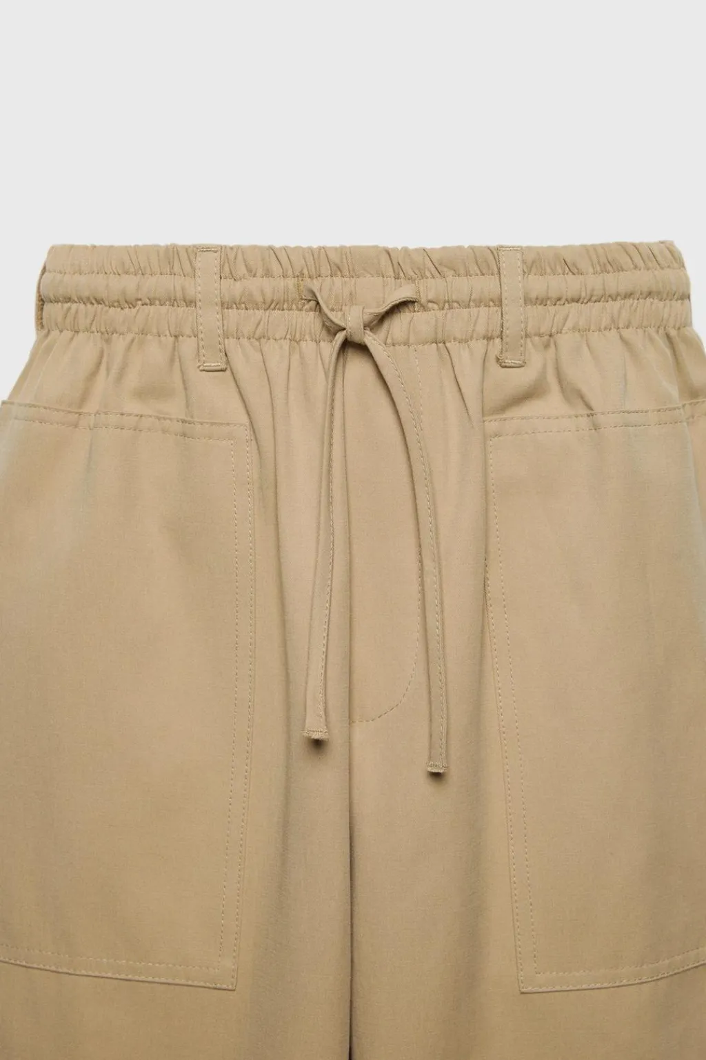 Pantalón tipo cargo con cinturilla elástica y aplique cordones frontal. Bolsillos de tipo plastrón en delantero, con tapeta en espalda y laterales. Bajo acabado en goma.